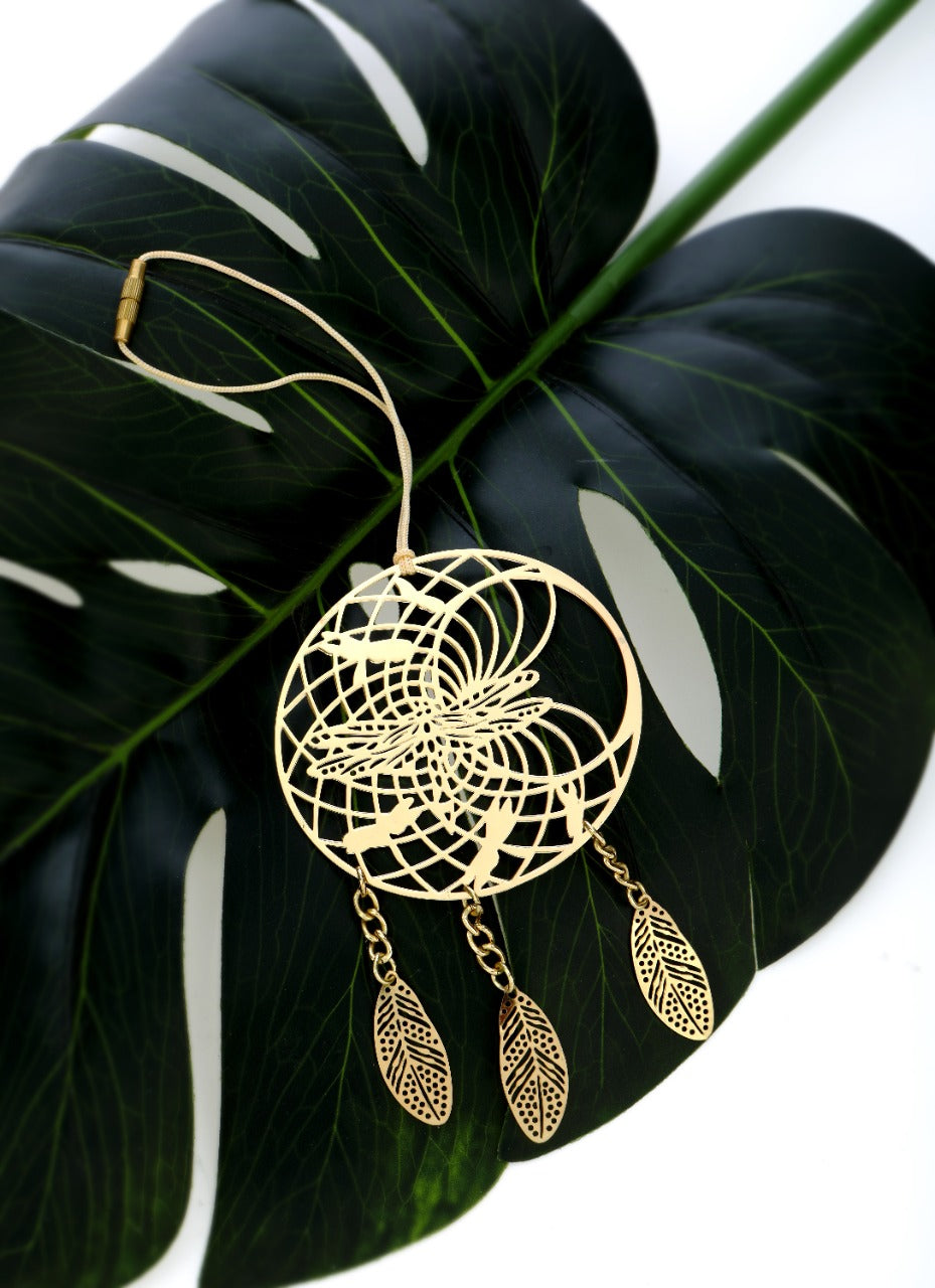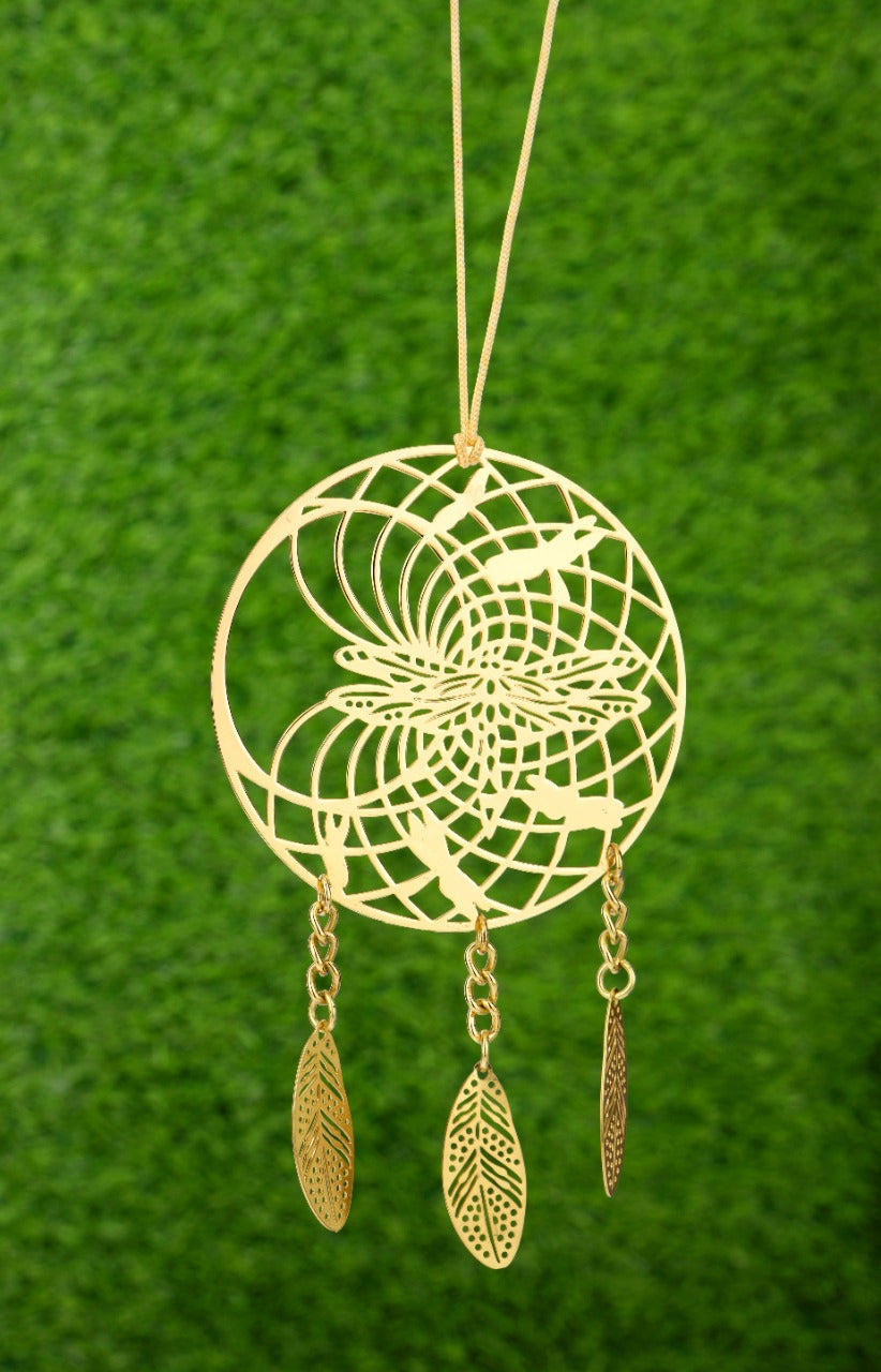 Adorn your car, home or office with this beautiful hand-made Brass Metal Dragonfly Dream Catcher featuring metal leaves and easy maintenance with a simple wipe of a dry and soft cloth, this decorative dream catcher catches your dreams and makes for a perfect gift for yourself or your loved ones to display on birthdays, anniversaries or any other special occasions.