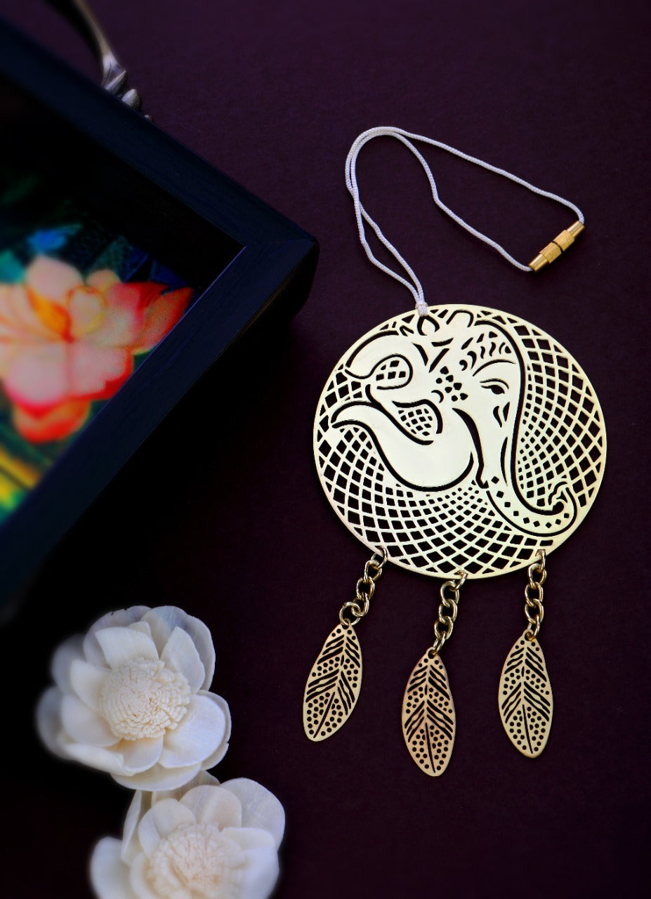 Adorn your car, home or office with this beautiful hand-made Brass Metal Om Ganesha Dream Catcher featuring metal leaves and easy maintenance with a simple wipe of a dry and soft cloth, this decorative dream catcher catches your dreams and makes for a perfect gift for yourself or your loved ones to display on birthdays, anniversaries or any other special occasions.