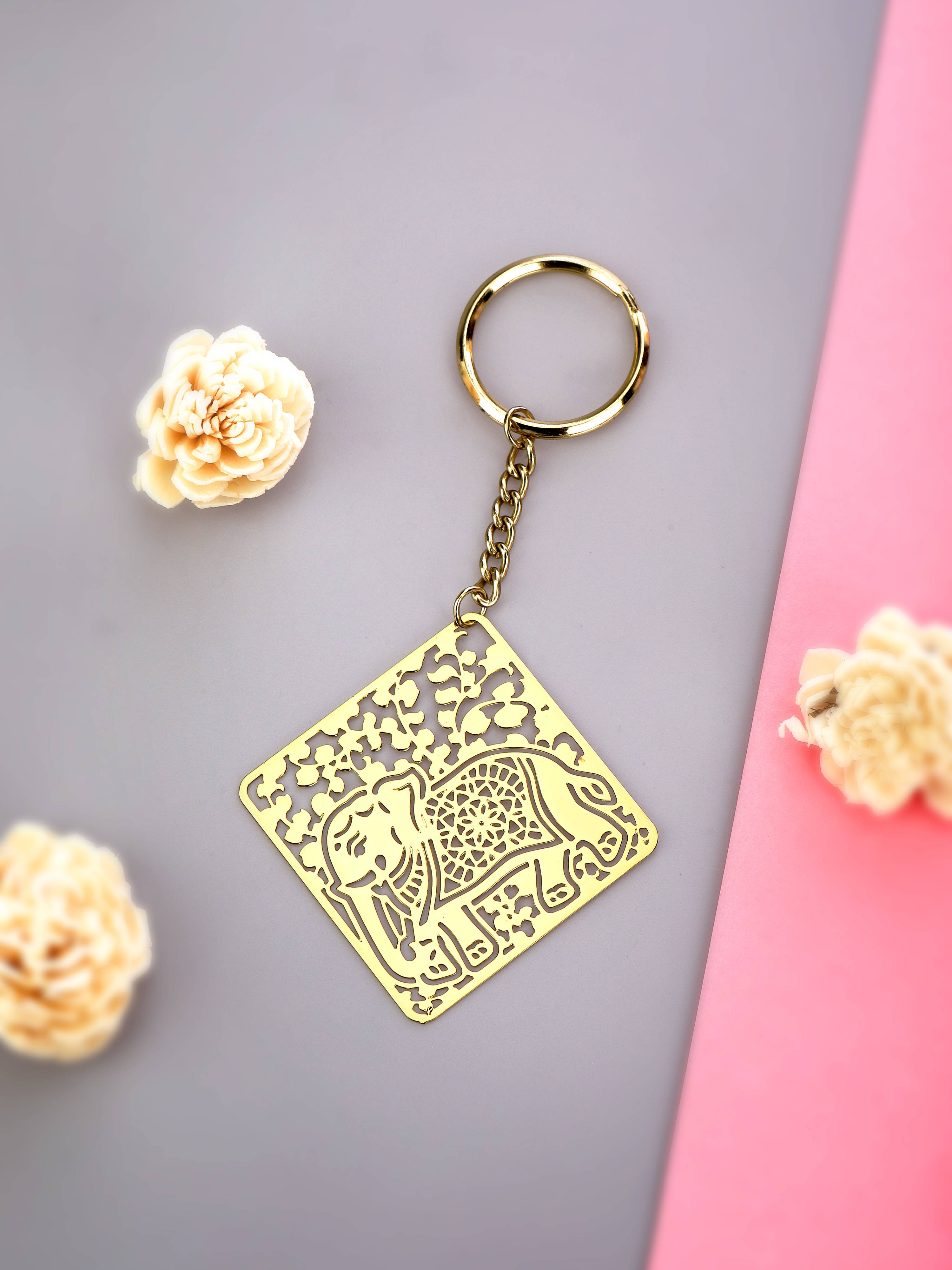 Adoraa's Elephant Jaali keychain is inspired by Kalamkaari art in India. It is crafted in brass and comes with a brass ring and chain. Can be used to hold your car, office, home, and special use keys. Makes for a perfect Gift for your friend, family, and lover.