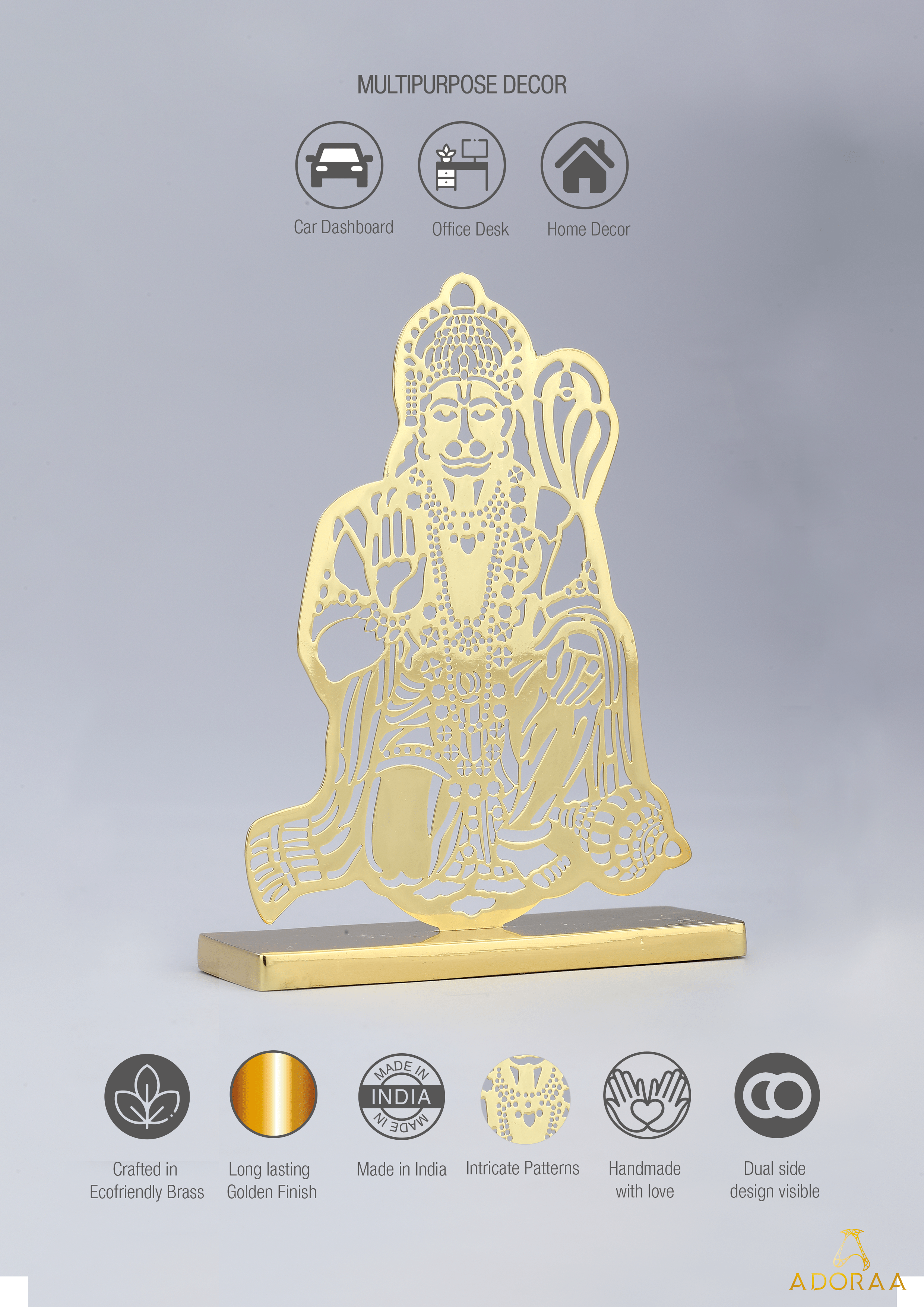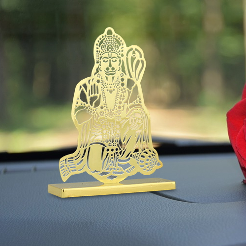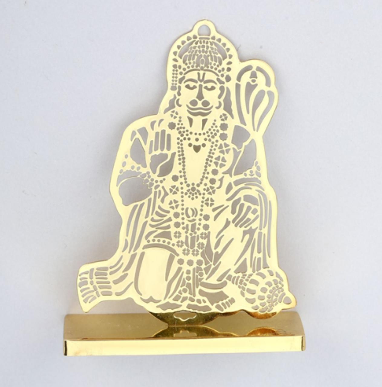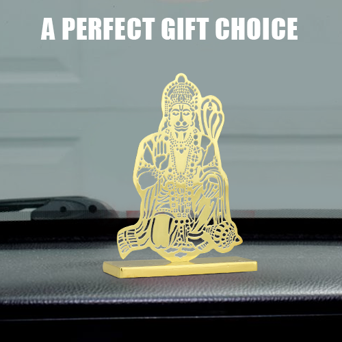 ADORAA's Jai Hanuman Desk/Car Dashboard/Temple Décor crafted in brass with golden finish. Intracrately crafted design, multiutility décor for car dashboard, office desk, home side tables/study tables. Unique gift for your loved ones