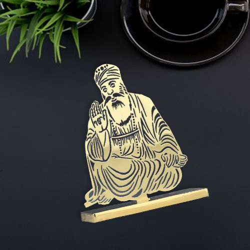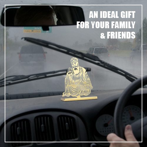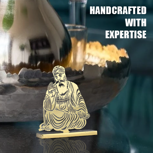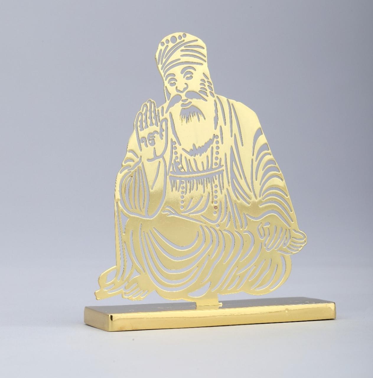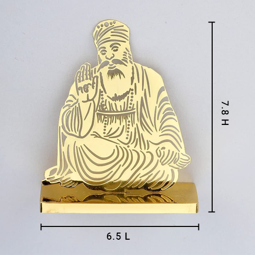ADORAA's Gurunanak Ji Desk/Car Dashboard/Temple Décor crafted in brass with golden finish. Intracrately crafted design, multiutility décor for car dashboard, office desk, home side tables/study tables. Unique gift for your loved ones