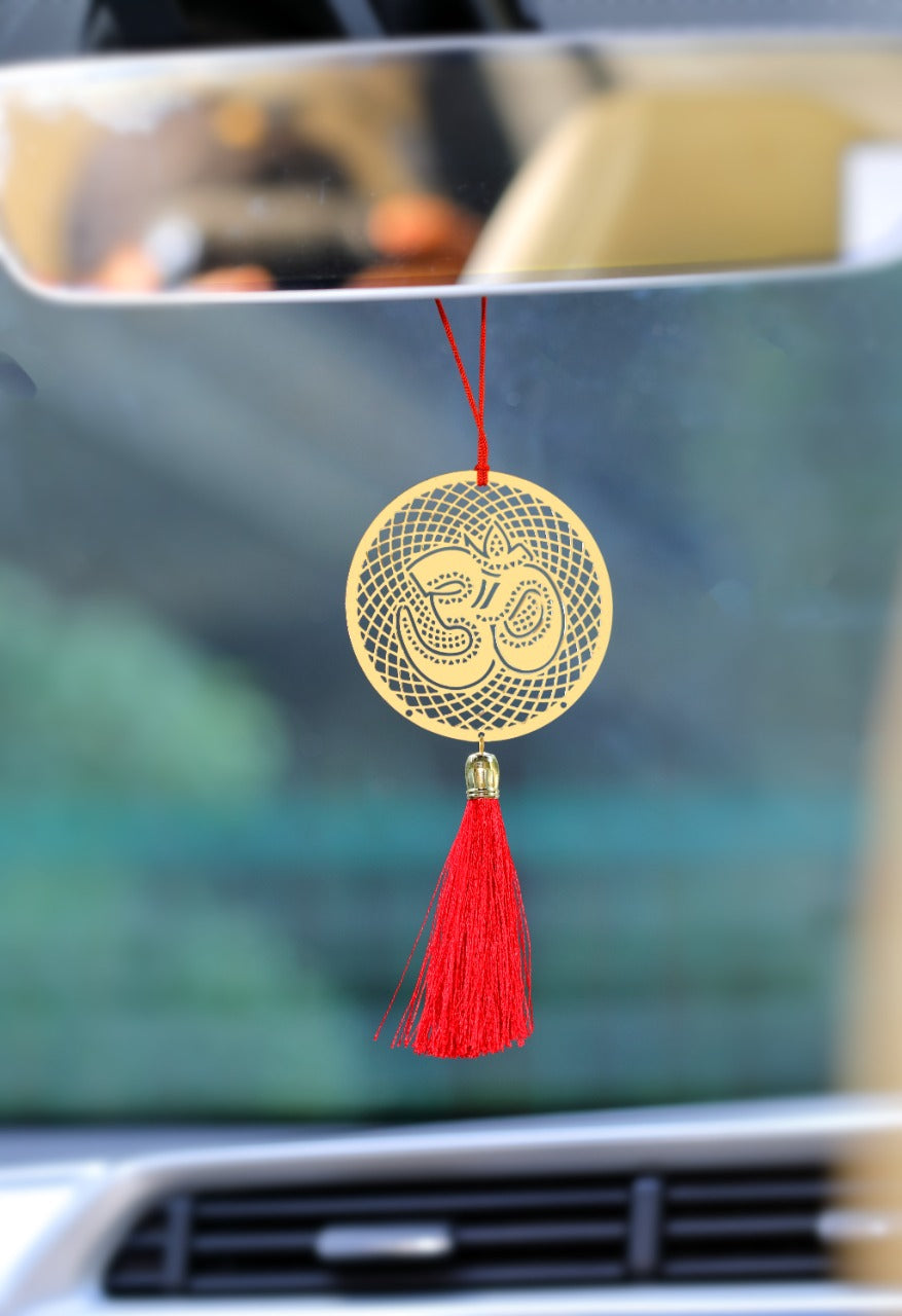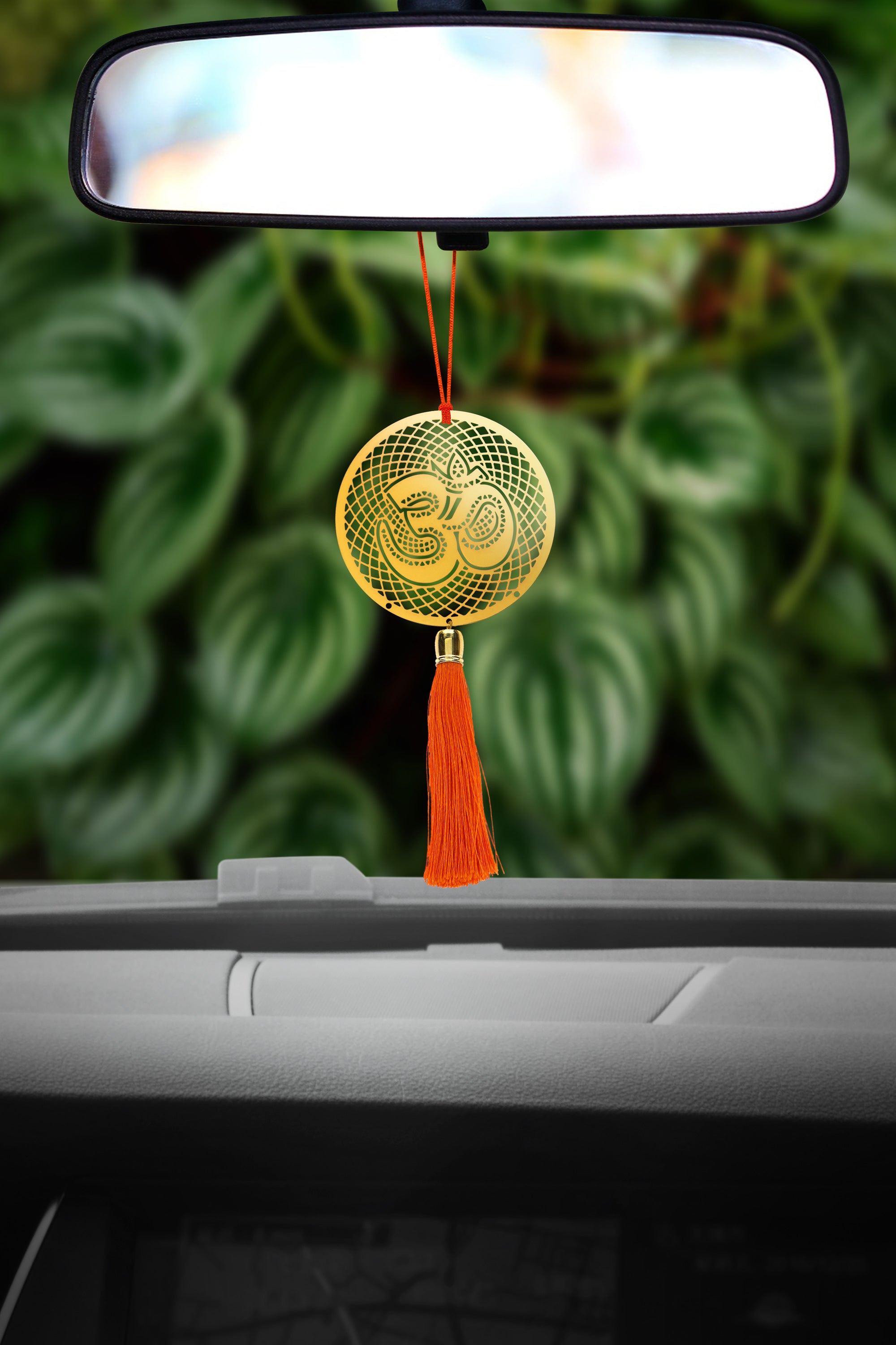 Adoraa's brass Metal Car Hanging rear view mirror Accessory/Décor in brass with satin dori & tassel . Handcrafted, by women artisans. Exclusive collection of Elegant design Automotive Rear View Mirror charm for your special car. Great decoration for car and perfect Gift for your friend, family and lover.