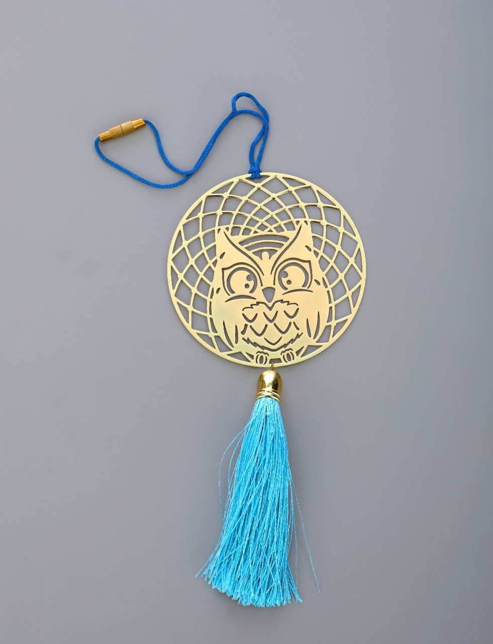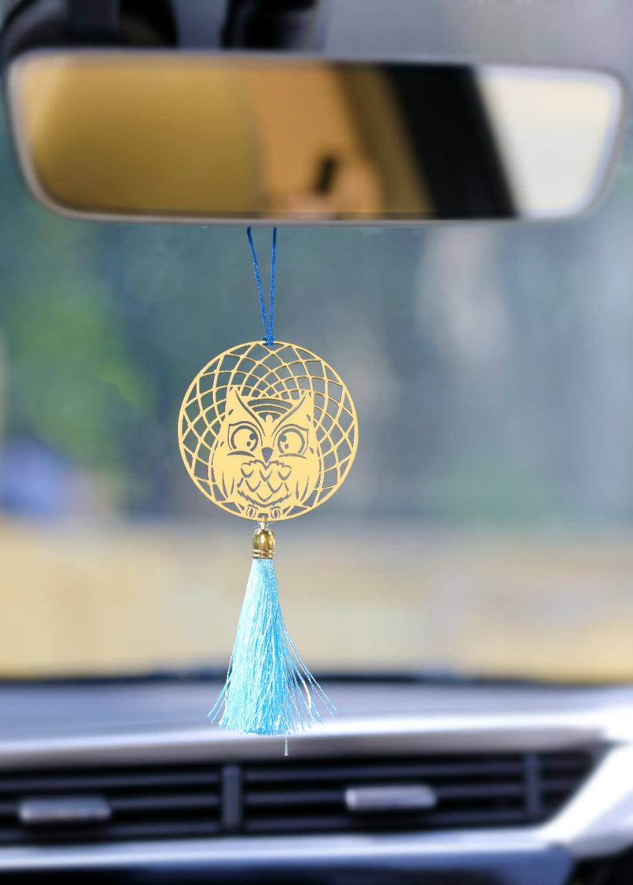Golden Brass Metal Car Hanging rear view mirror Accessory/Décor with Red Dori & Tassel. Handcrafted, by women artisans. Exclusive collection of Elegant design Automotive Rear View Mirror charm for your special car. Great decoration for car and perfect Gift for your friend, family and lover