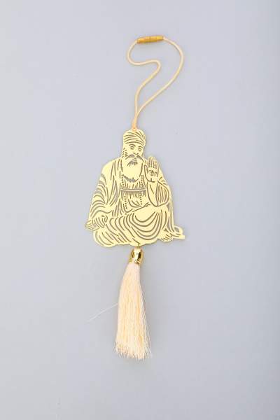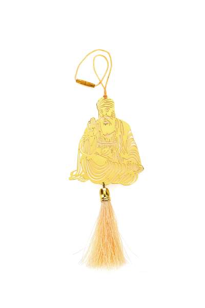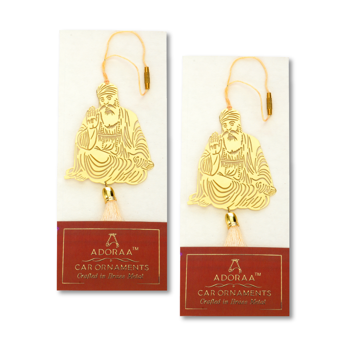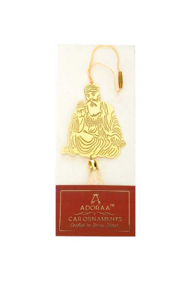 Adoraa's Gurunanak Devji Golden Brass Metal Car Hanging rear view mirror Accessory/Décor in brass with Golden Dori & Tassel . Handcrafted, by women artisans. Exclusive collection of Elegant design Automotive Rear View Mirror charm for your special car. Great decoration for car and perfect Gift for your friend, family and lover.