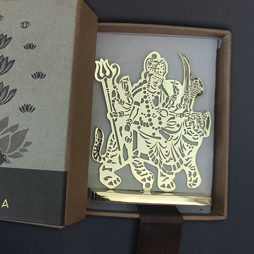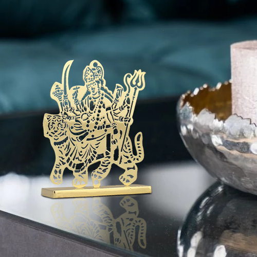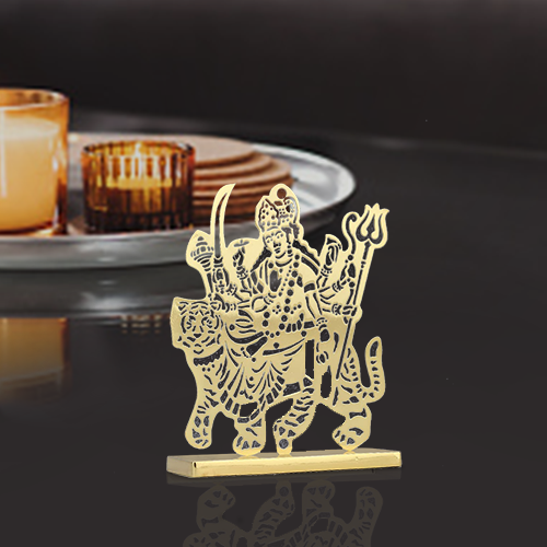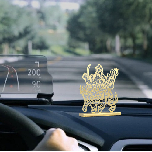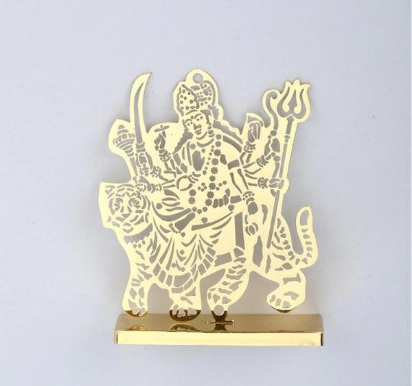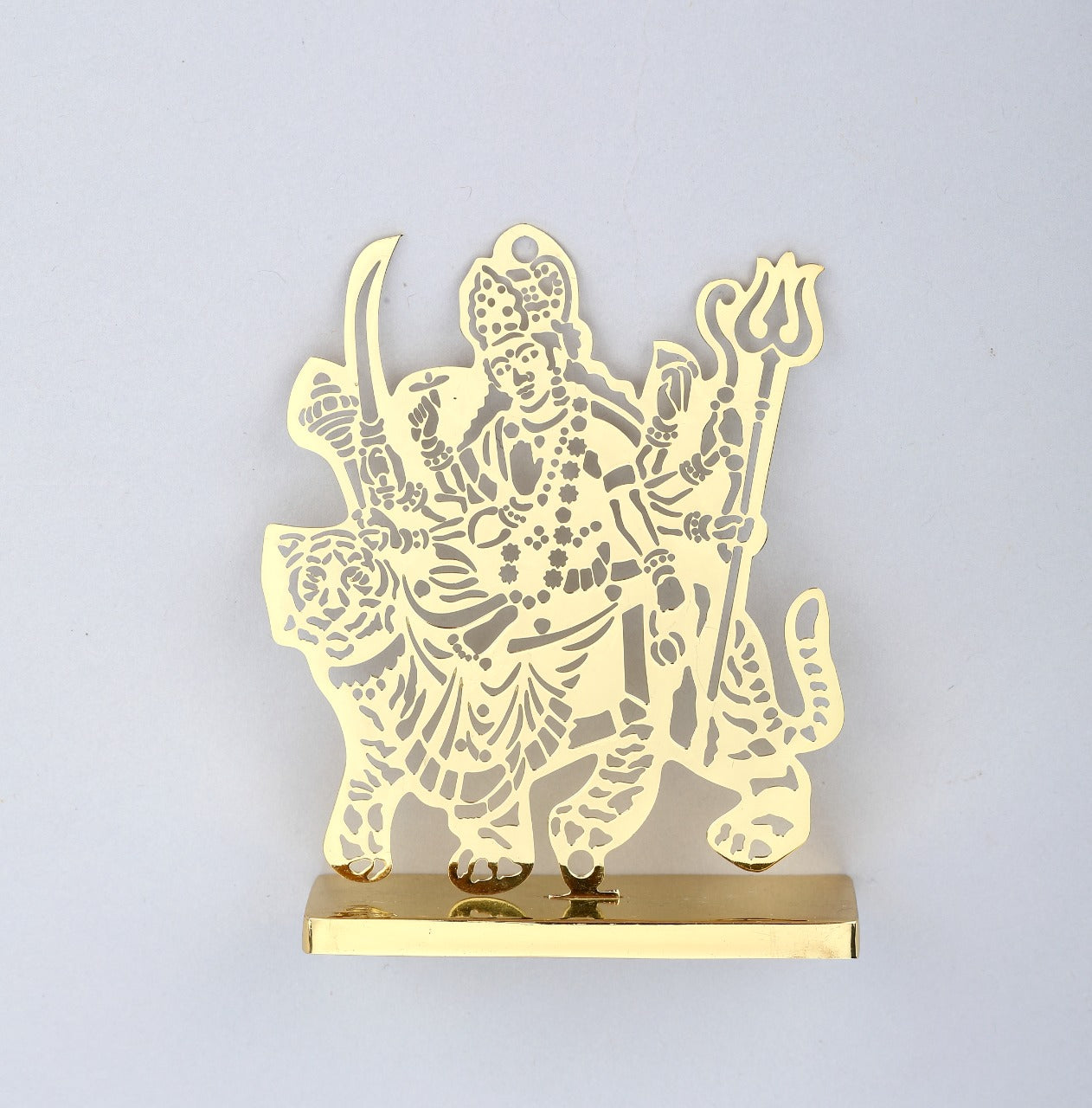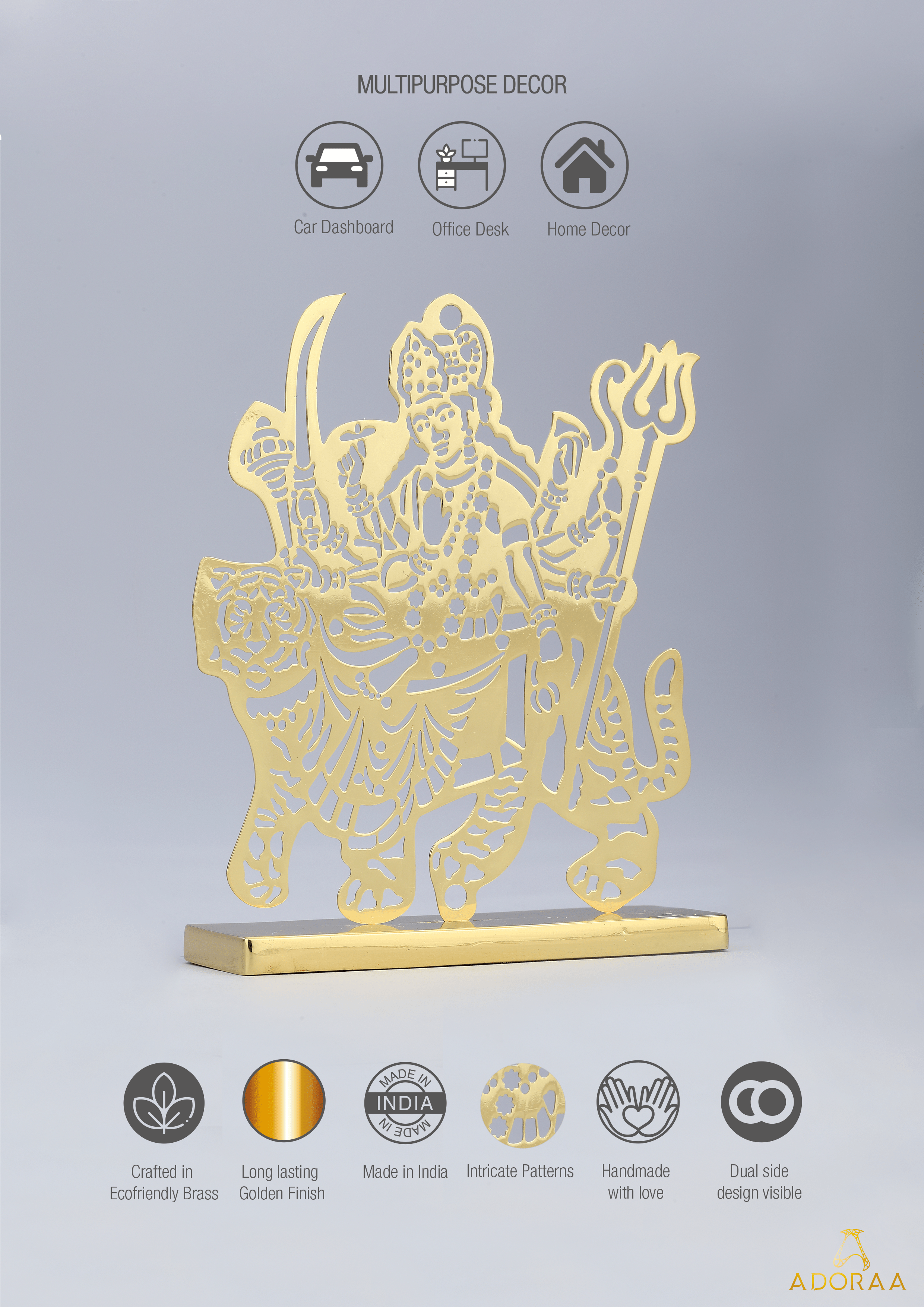 ADORAA's Durga Desk/Car Dashboard/Temple Décor crafted in brass with golden finish. Intracrately crafted design, multiutility décor for car dashboard, office desk, home side tables/study tables. Unique gift for your loved ones