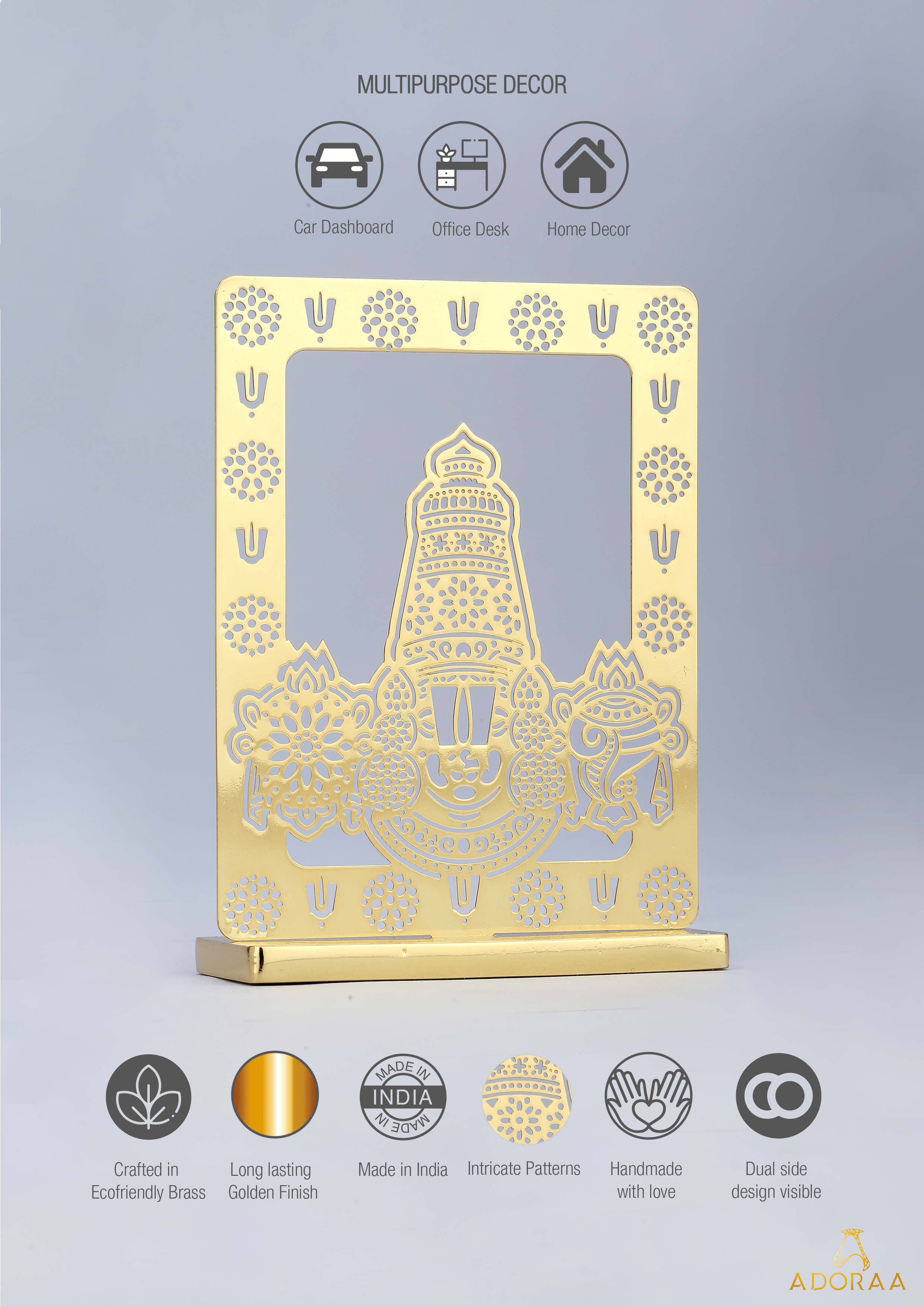 ADORAA's Tirupati Desk/Car Dashboard/Temple Décor crafted in brass with golden finish. Intracrately crafted design, multiutility décor for car dashboard, office desk, home side tables/study tables. Unique gift for your loved ones