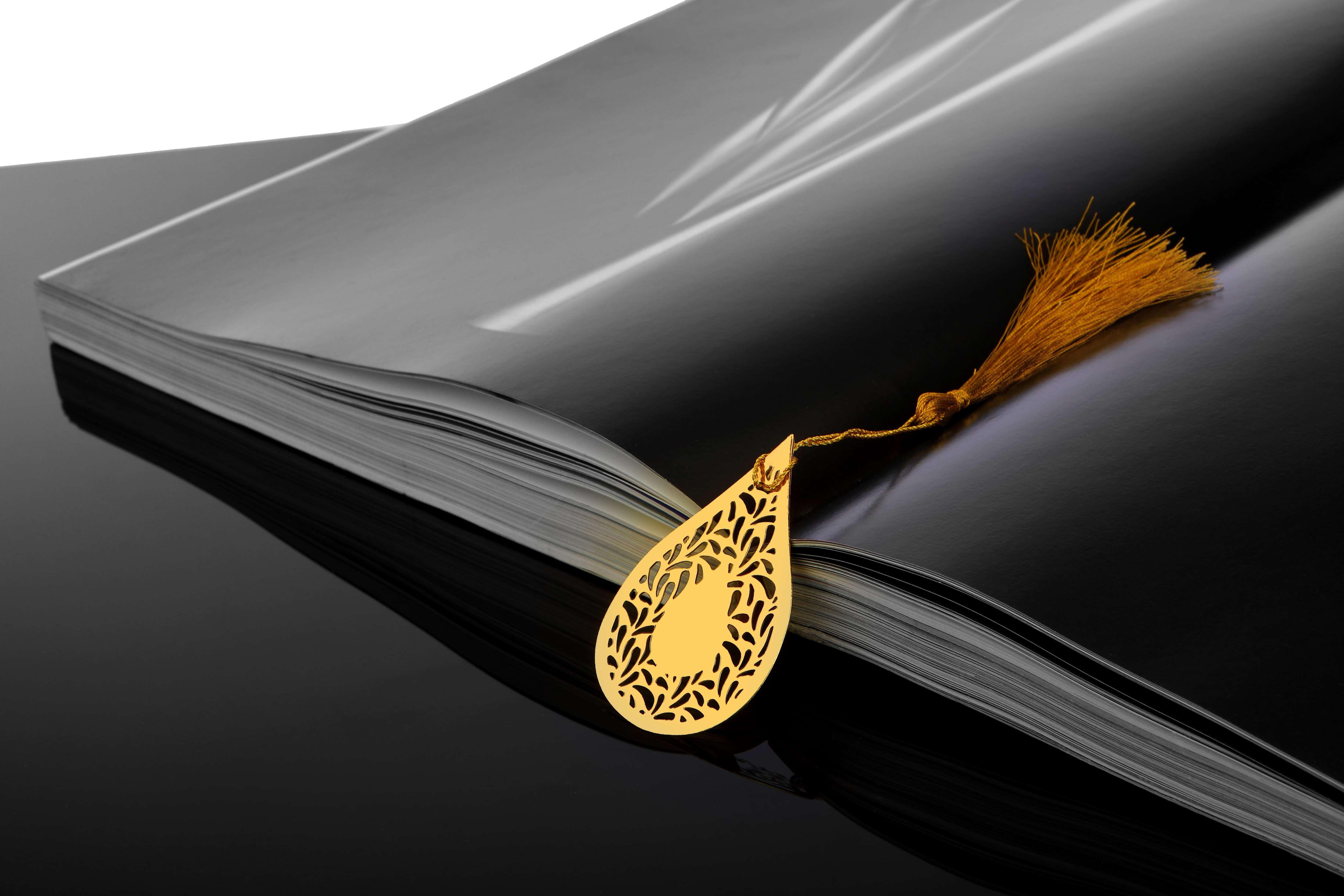 Dew Drop Jaali Golden Finish Brass Metal Bookmarks with Golden Tassel. Handcrafted, by women artisans. Exclusive collection of Elegant design bookmark, would perfectly compiment your love for reading. A perfect casual gift for your friends, colleagues, family and lover.