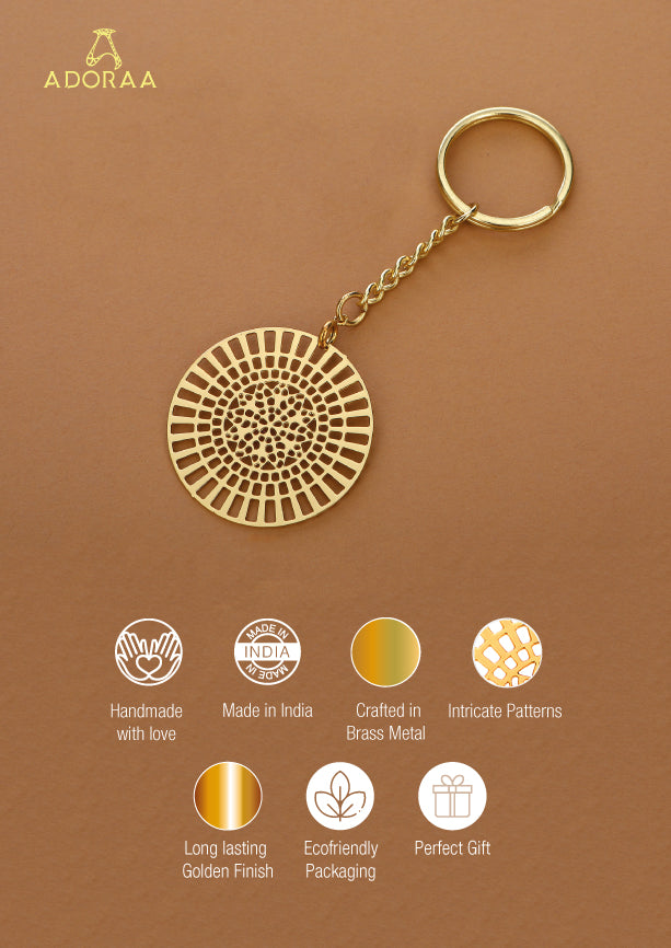 Adoraa's Dial Design Jaali keychain is crafted in brass and comes with a brass ring and chain. Can be used to hold your car, office, home and special use keys. Makes for a perfect Gift for your friend, family and lover.