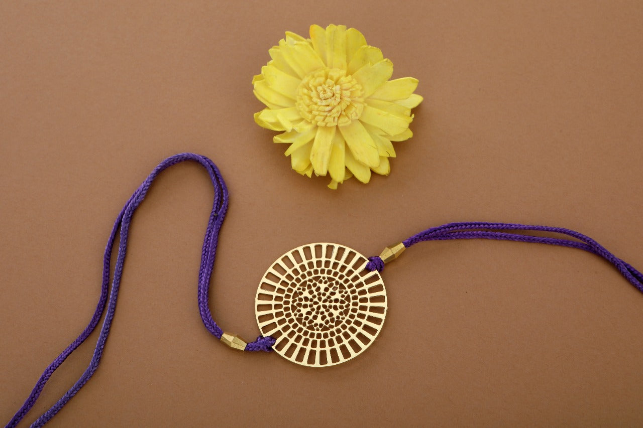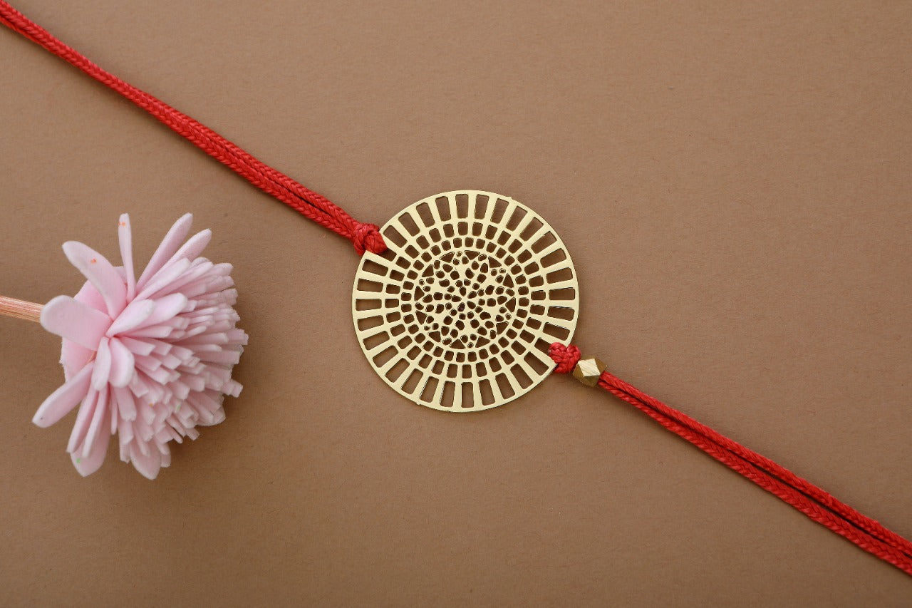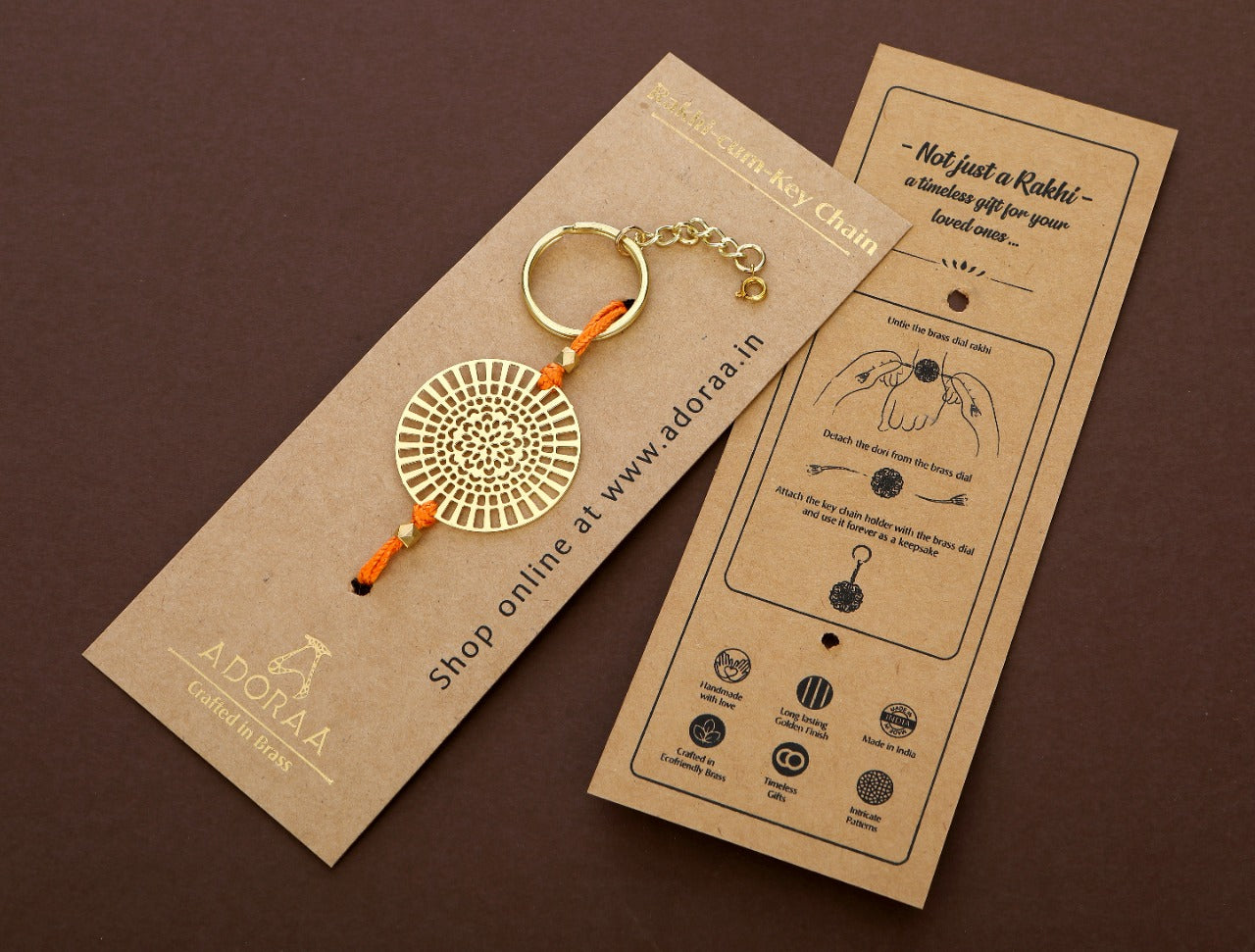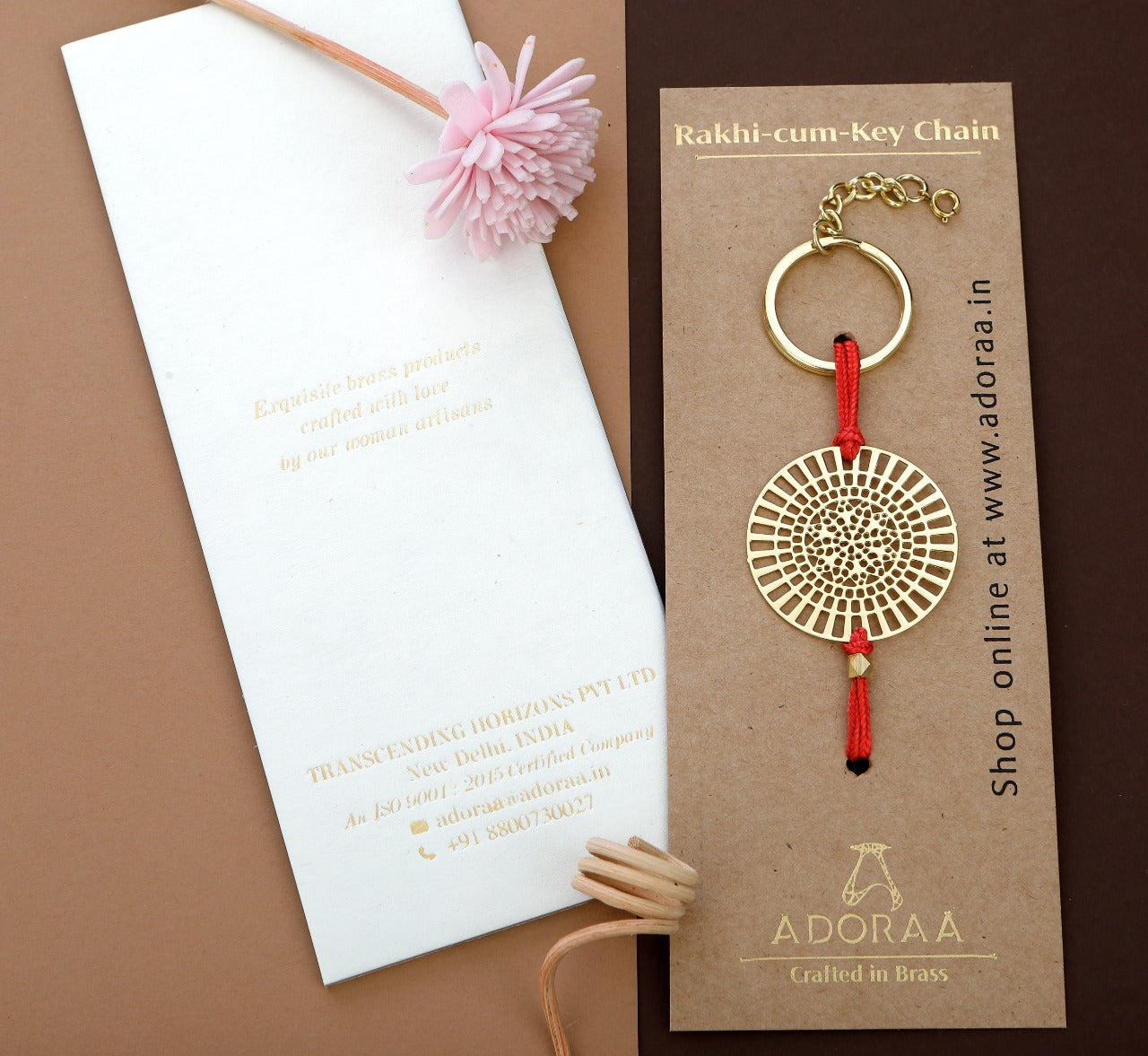 ADORAA's Dial Design Rakhi for bhai/brother. After use you can convert it into a keychain ring for timeless memories. Crafted in brass with golden finish. Intracrately crafted design, can be converted into a keychain. A timeless gifting option for your loved ones