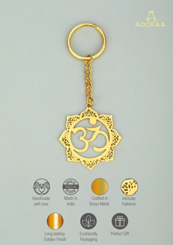 Adoraa's Floral Om Symbol keychain is crafted in brass and comes with a brass ring and chain. Carry the Om Symbol Charm with you whereever you go. Can be used to hold your car, office, home and special use keys. Makes for a perfect Gift for your friend, family and lover