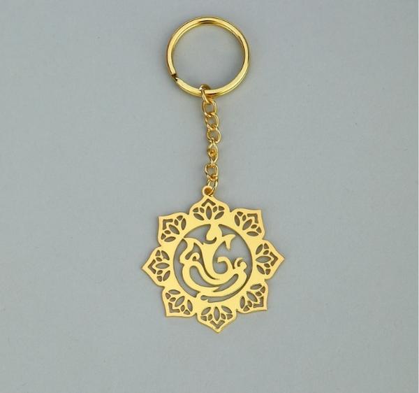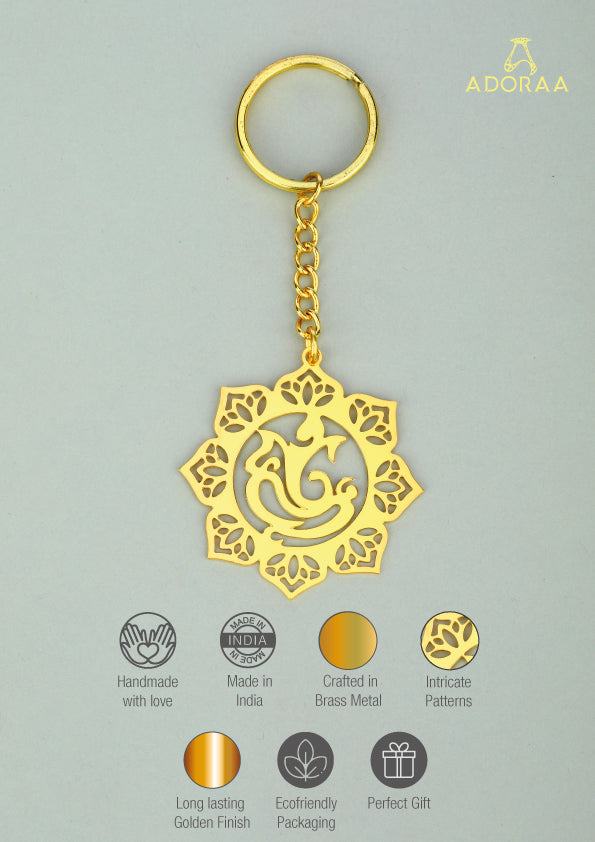Adoraa's Gol Ganesha keychain is crafted in brass and comes with a brass ring and chain. Carry the lord ganesha Charm with you whereever you go. Can be used to hold your car, office, home and special use keys. Makes for a perfect Gift for your friend, family and lover