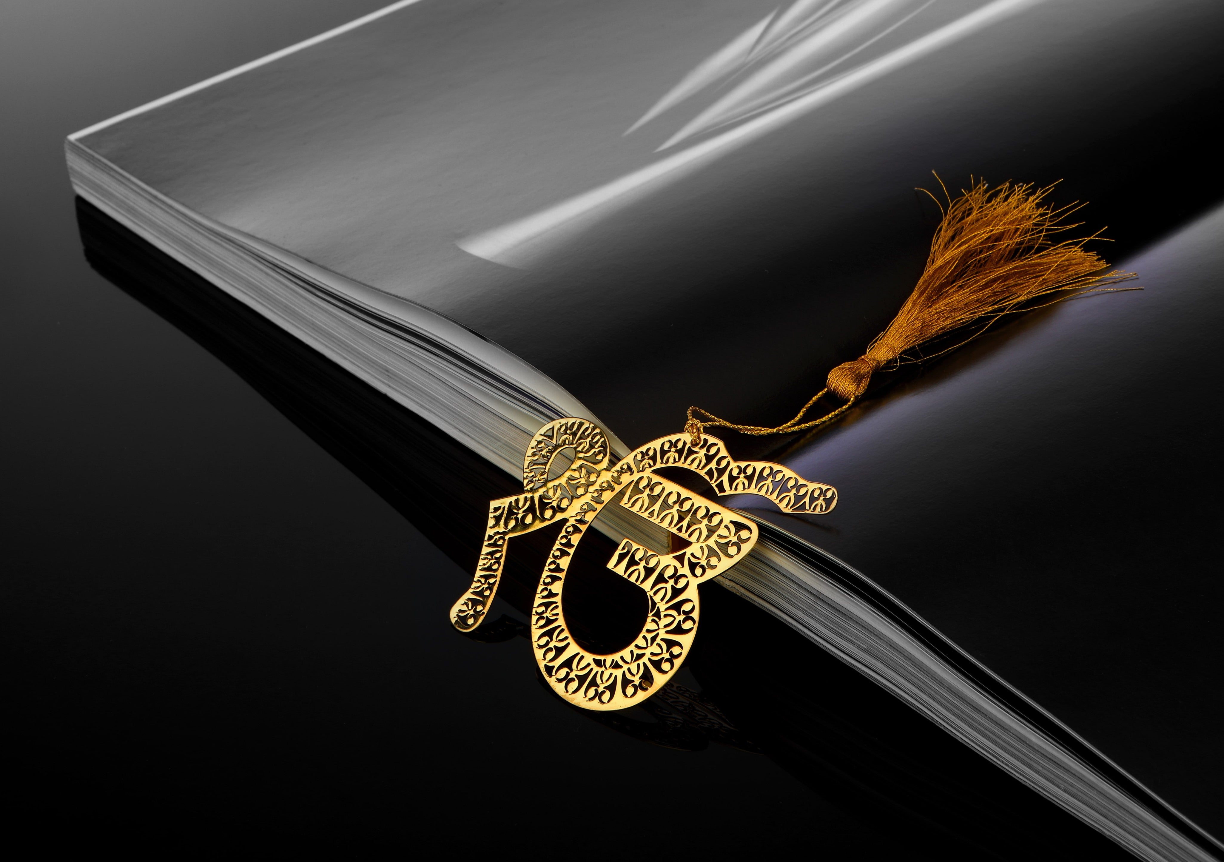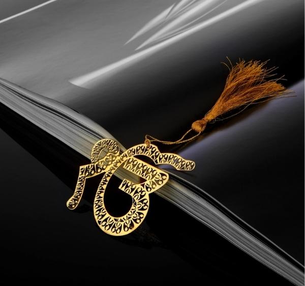 Khanda Symbol in an intricrate design design Golden Finish Brass Metal Bookmarks with Golden Tassel. Handcrafted, by women artisans. Exclusive collection of Elegant design bookmark, would perfectly compiment your love for reading. A perfect casual gift for your friends, colleagues, family and lover.