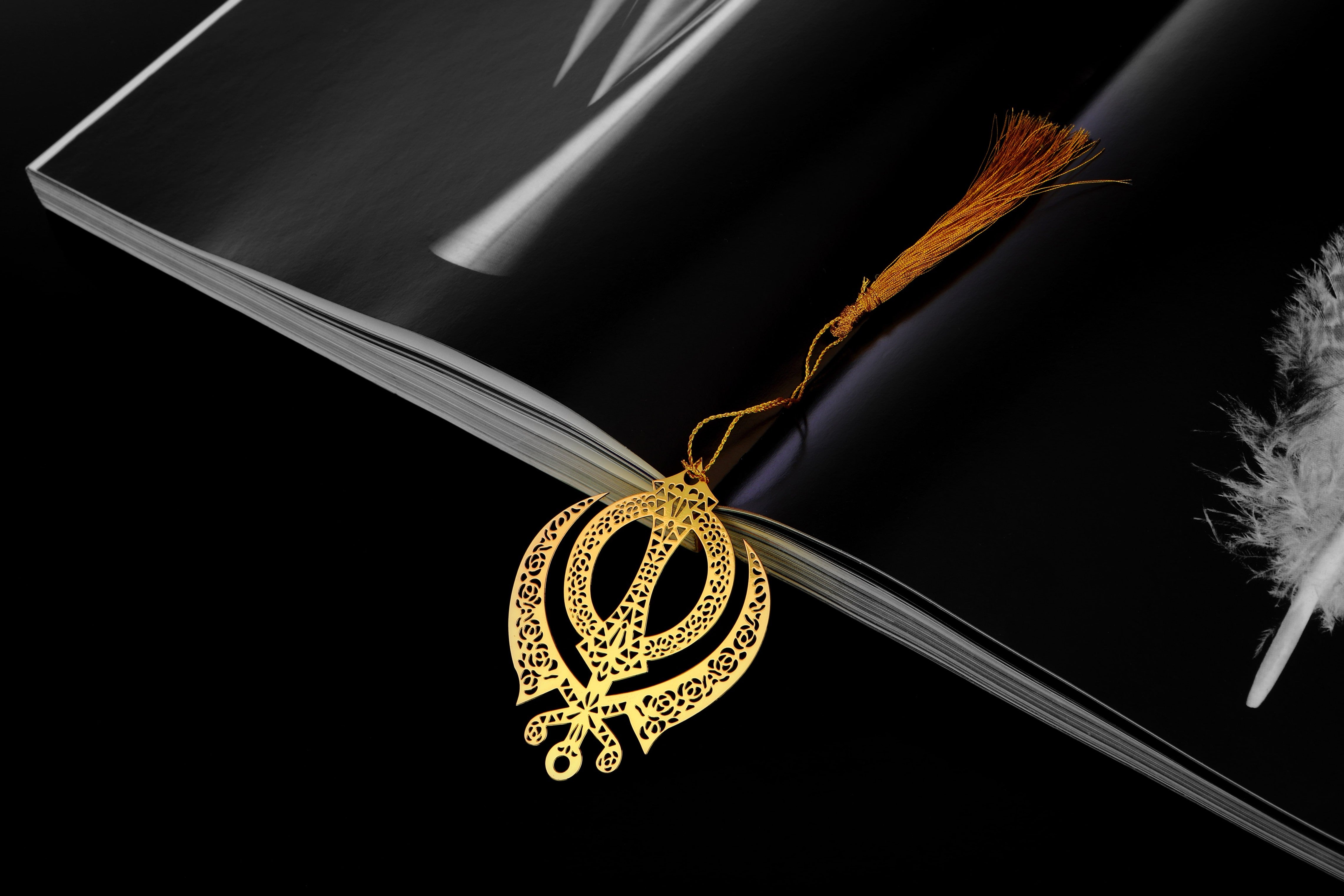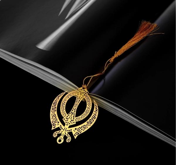 Ik Onkar Symbol in an intricrate design design Golden Finish Brass Metal Bookmarks with Golden Tassel. Handcrafted, by women artisans. Exclusive collection of Elegant design bookmark, would perfectly compiment your love for reading. A perfect casual gift for your friends, colleagues, family and lover.