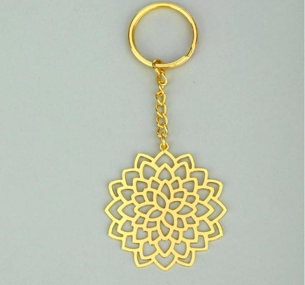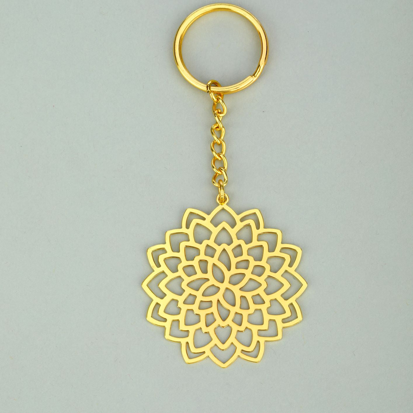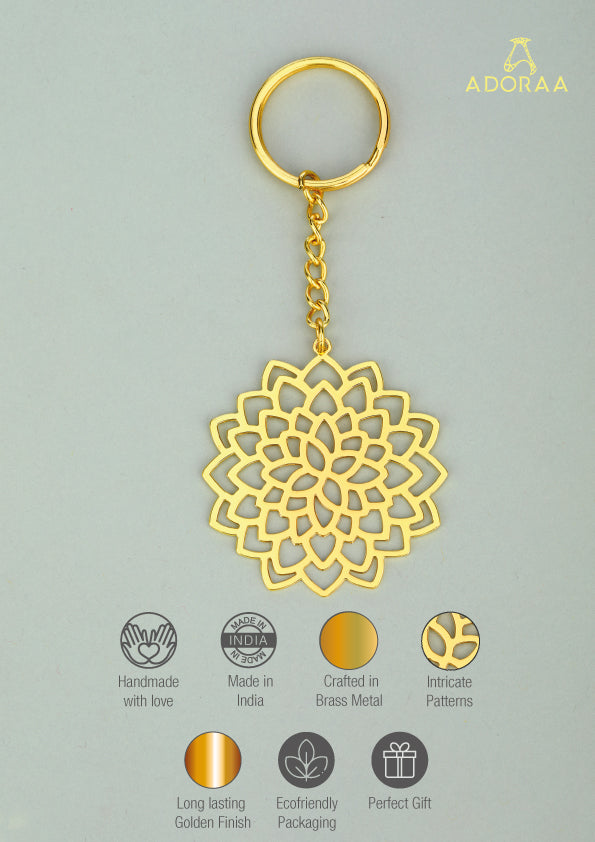Adoraa's Rythym Collection Lotus keychain is crafted in brass and comes with a brass ring and chain. Can be used to hold your car, office, home and special use keys. Makes for a perfect Gift for your friend, family and lover.