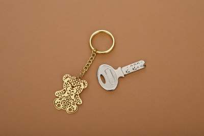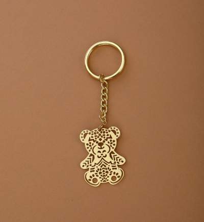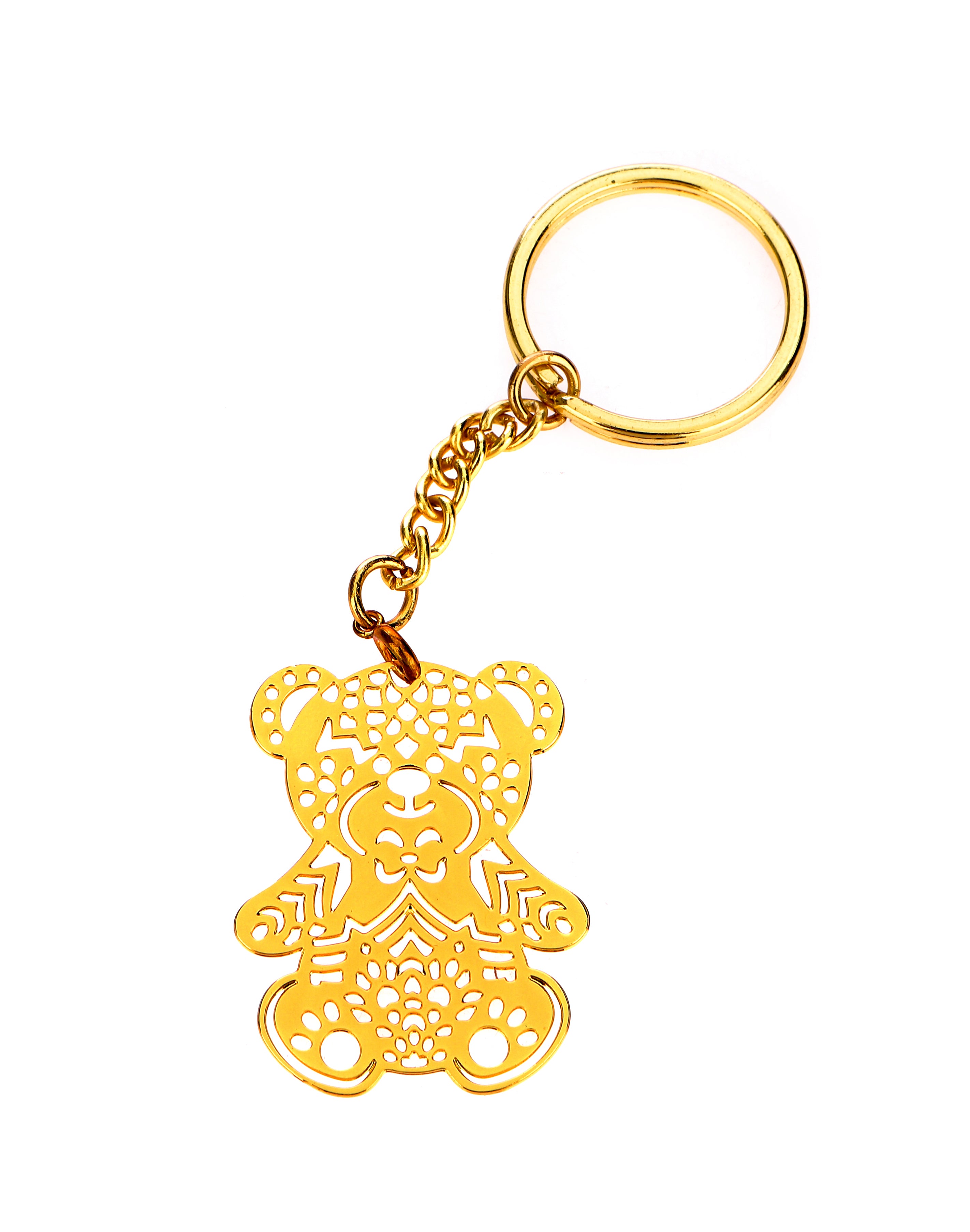 Adoraa's Teddy bear Jaali keychain is crafted in brass and comes with a brass ring and chain. Can be used to hold your car, office, home and special use keys. Makes for a perfect Gift for your friend, family and lover.