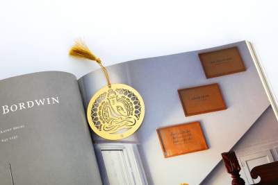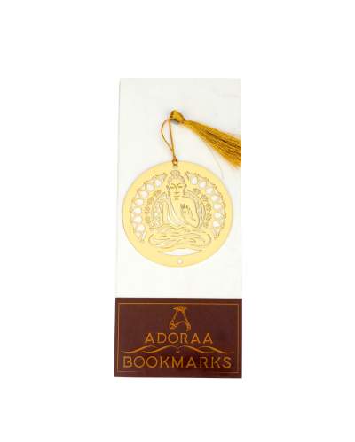 Buddha Golden Finish Brass Metal Bookmarks with Golden Tassel. Handcrafted beautiful bookmarks, by women artisans. An exclusive collection of Elegant design bookmark would perfectly complement your love for reading. A perfect casual gift for your friends, colleagues, family, and lover. buy elegant bookmarks for books and diaries.
