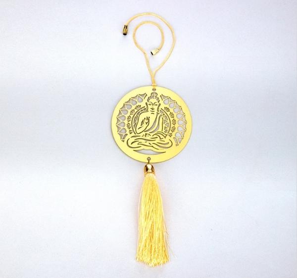 ADORAA's Buddha Hanging Accessories for Car rear view mirror Decor in Brass with Golden Dori & Tassel . Handcrafted, by women artisans. Exclusive collection of Elegant design Automotive Rear View Mirror charm for your special car. Great decoration for car and perfect Gift for your friend, family and lover