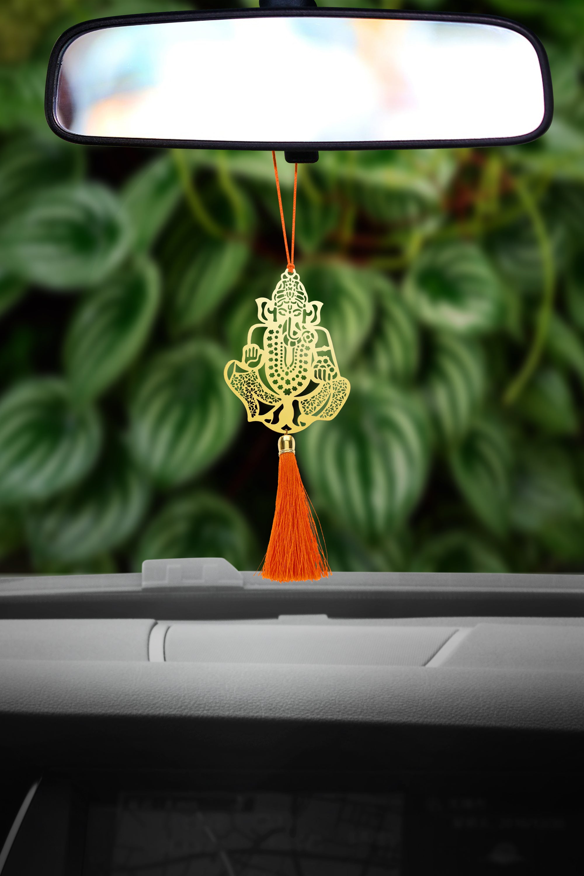 ADORAA's Ganesha Ganpati Ladoo Ganesh Siddhivinayak Accessories for Car rear view mirror Decor in Brass Red Dori & Tassel. Handcrafted, by women artisans. Exclusive collection of Elegant design Automotive Rear View Mirror charm for your special car. Great decoration for car and perfect Gift for your friend, family and lover