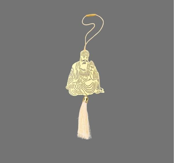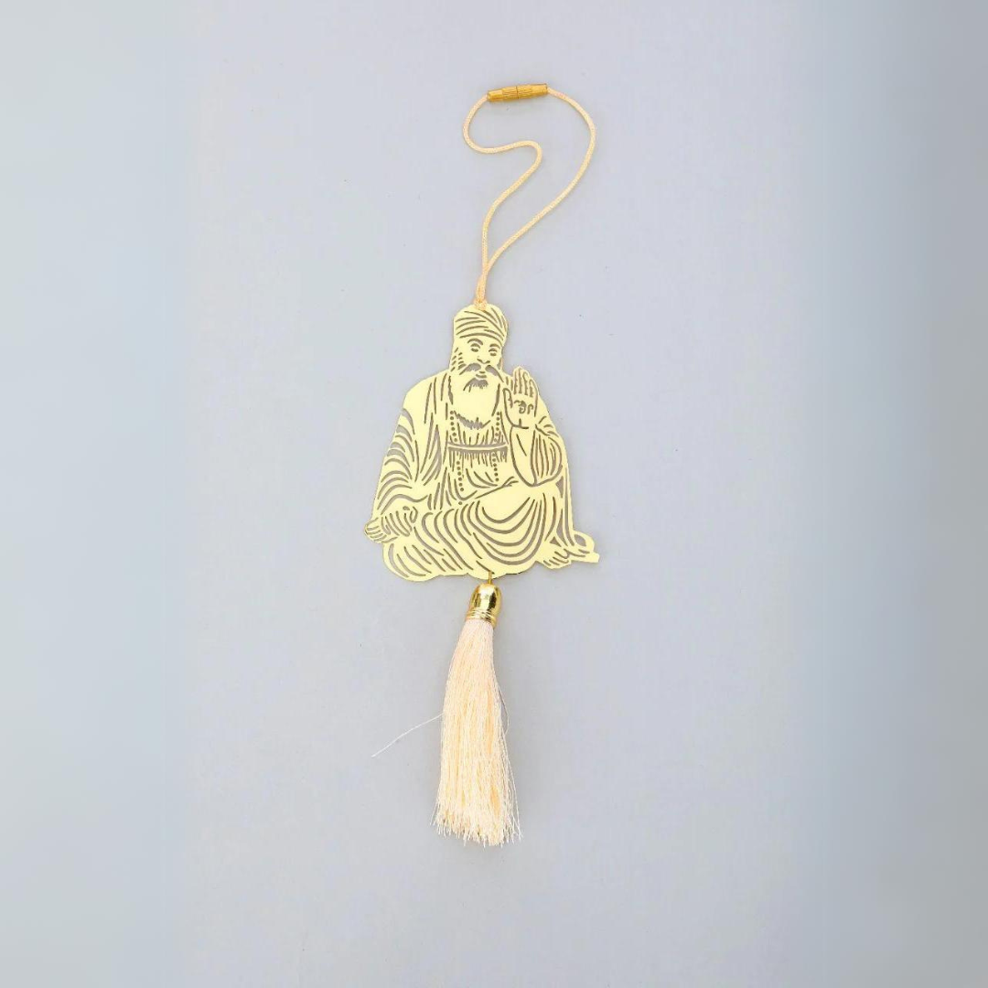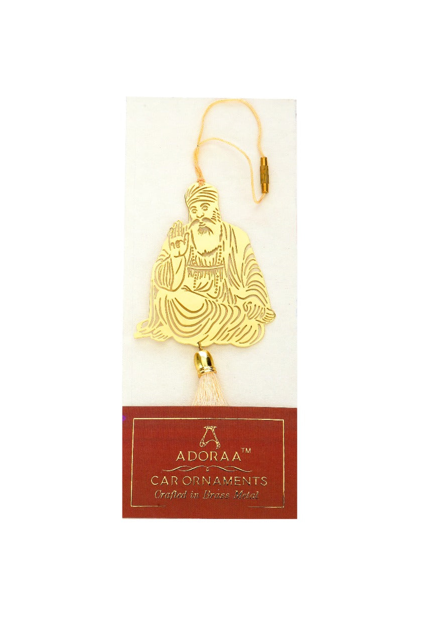 Adoraa's Gurunanak Devji Golden Brass Metal Car Hanging rear view mirror Accessory/Décor in brass with Golden Dori & Tassel . Handcrafted, by women artisans. Exclusive collection of Elegant design Automotive Rear View Mirror charm for your special car. Great decoration for car and perfect Gift for your friend, family and lover