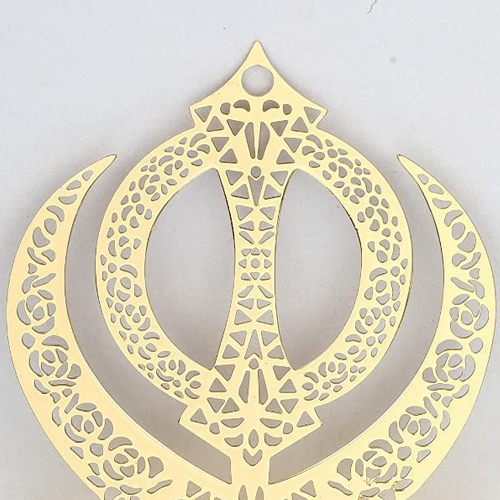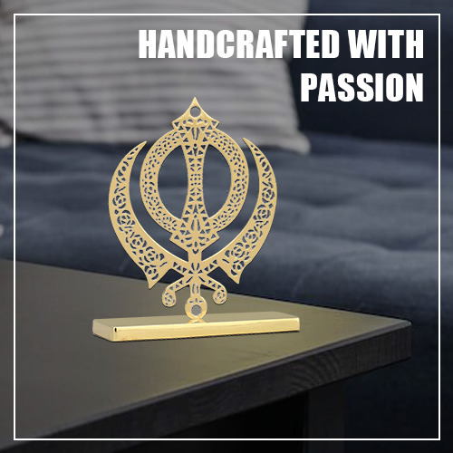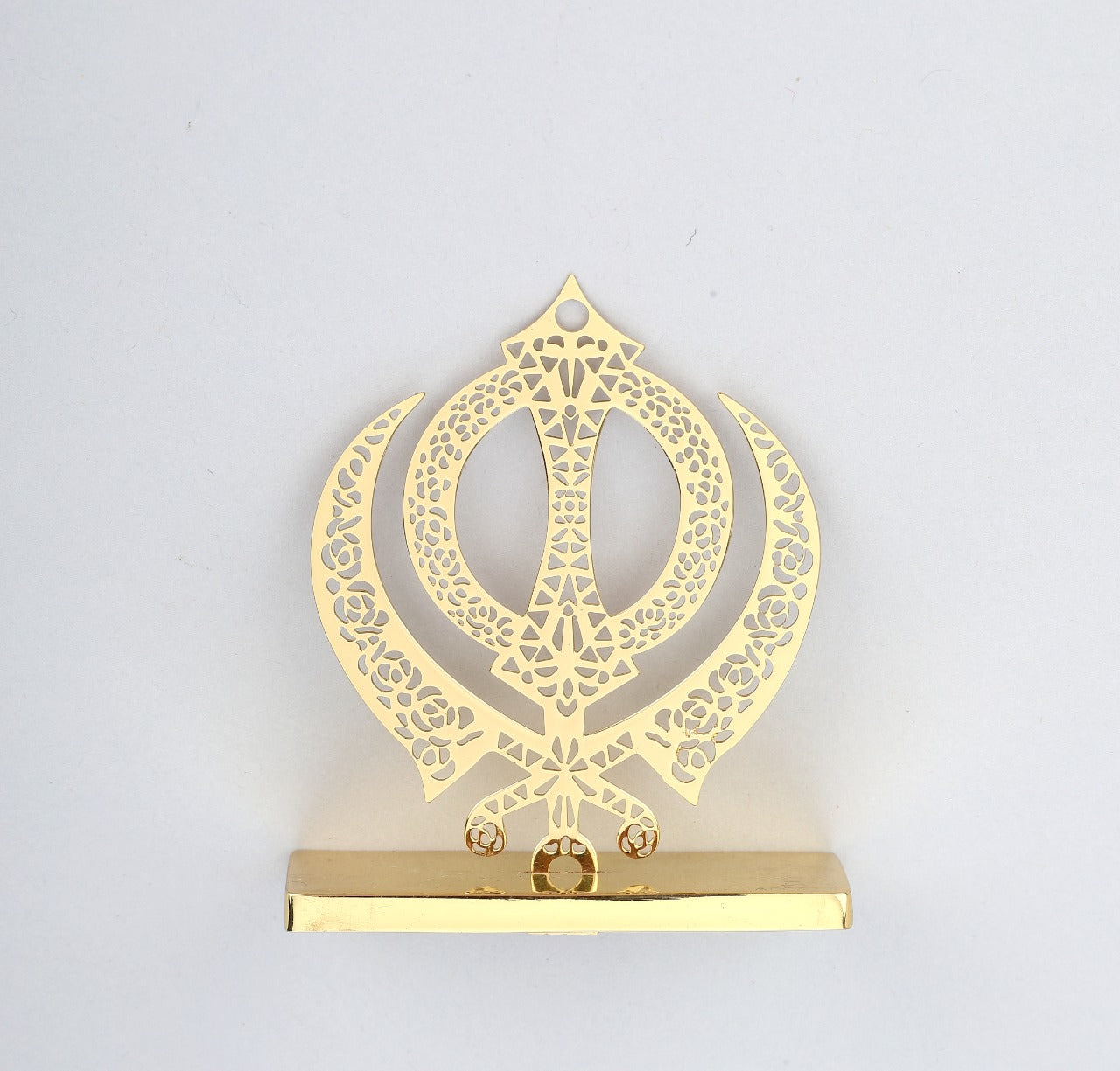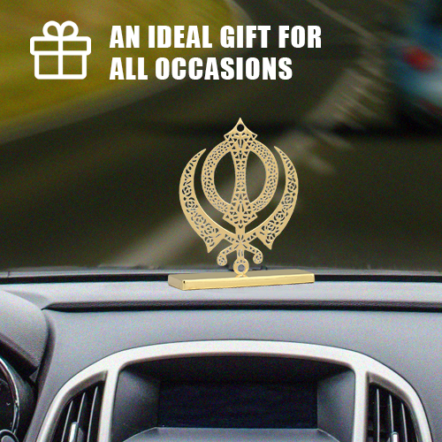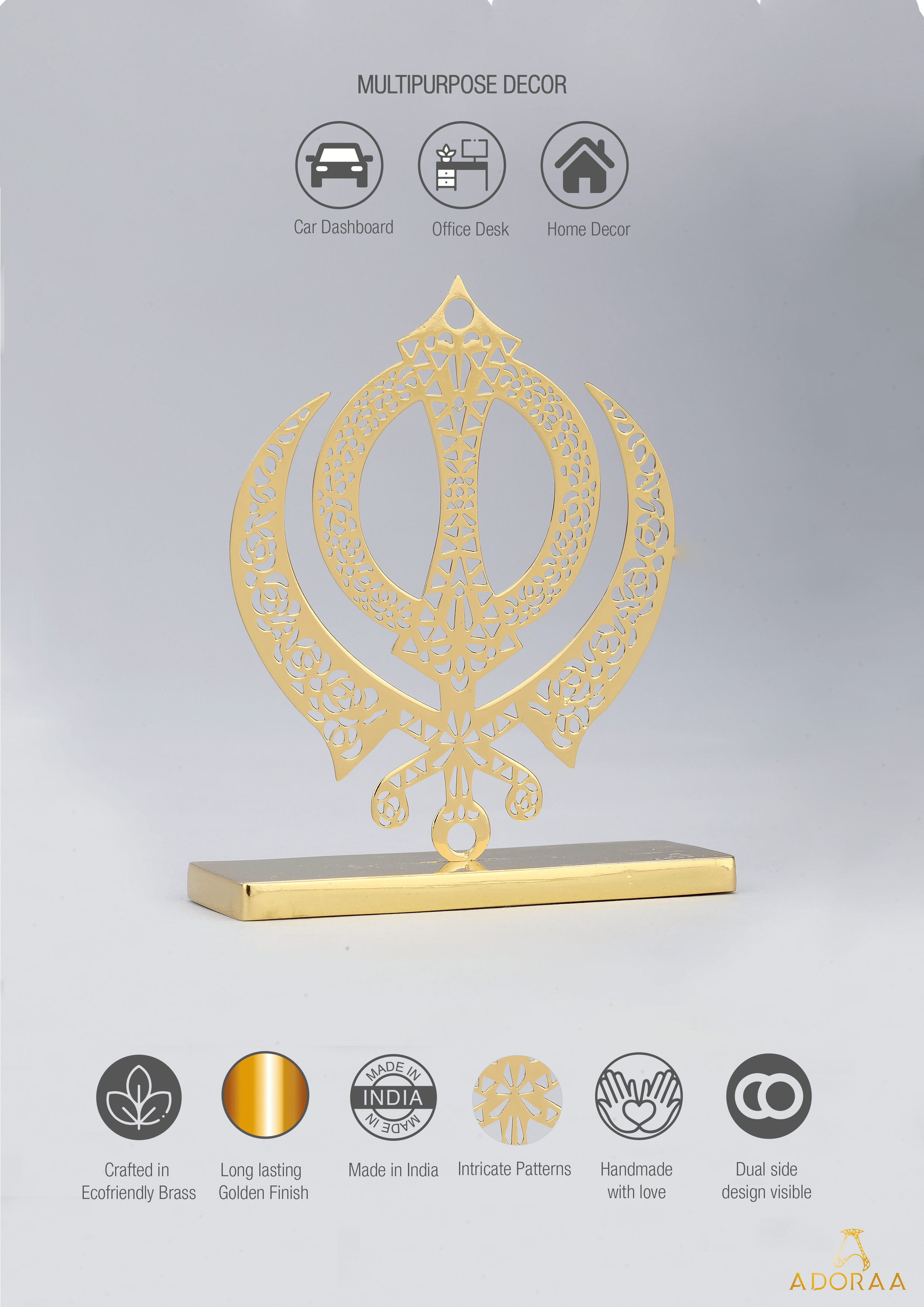 ADORAA's Khanda Desk/Car Dashboard/Temple Décor crafted in brass with golden finish. Intracrately crafted design, multiutility décor for car dashboard, office desk, home side tables/study tables. Unique gift for your loved ones