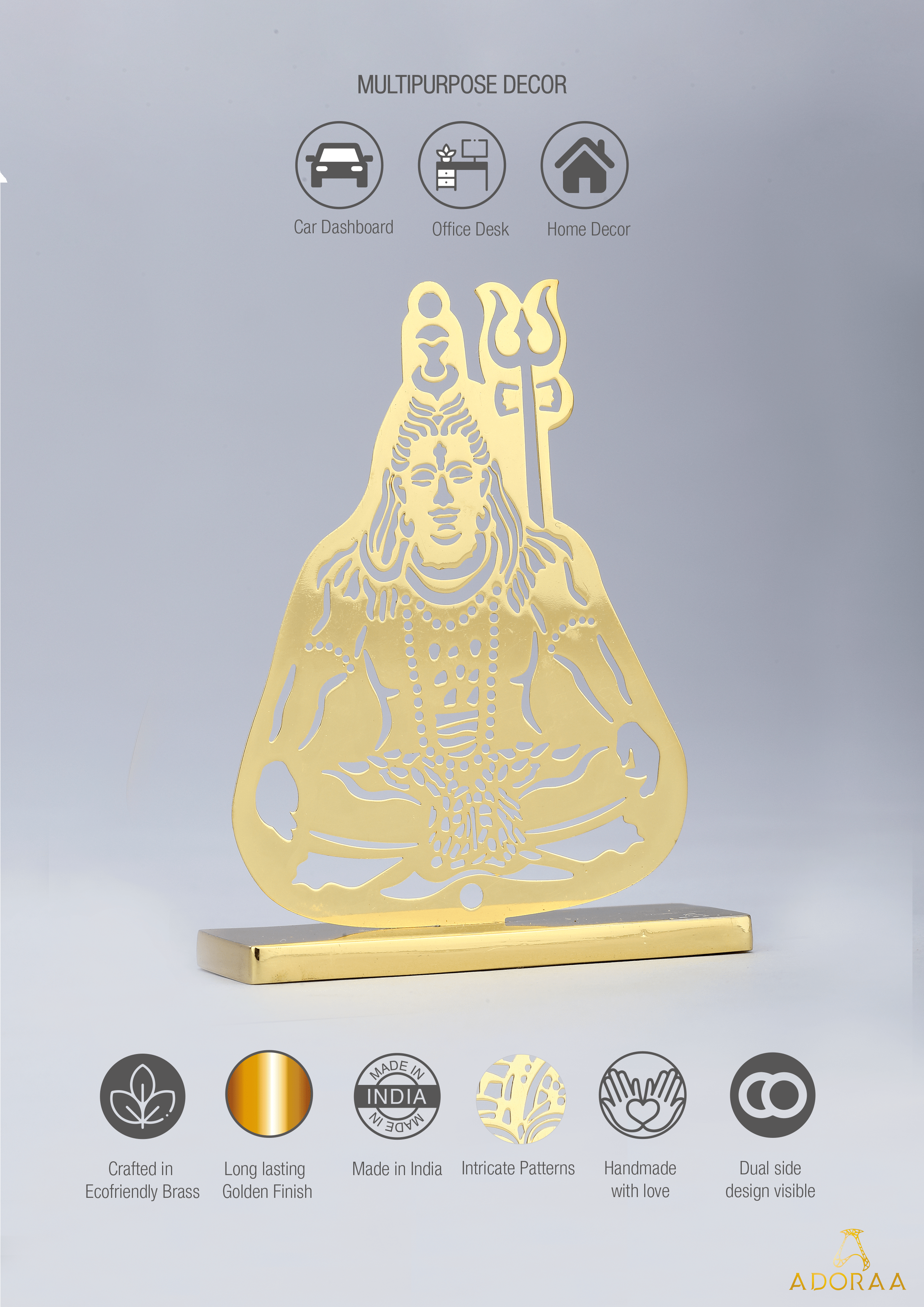 ADORAA's Shiva/Shivji Desk/Car Dashboard/Temple Décor crafted in brass with golden finish. Intracrately crafted design, multiutility décor for car dashboard, office desk, home side tables/study tables. Unique gift for your loved ones