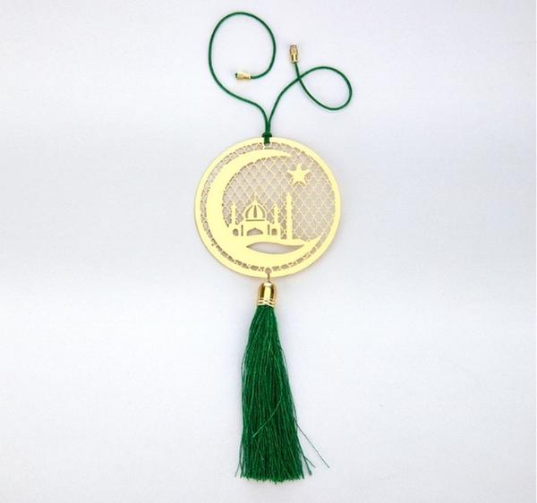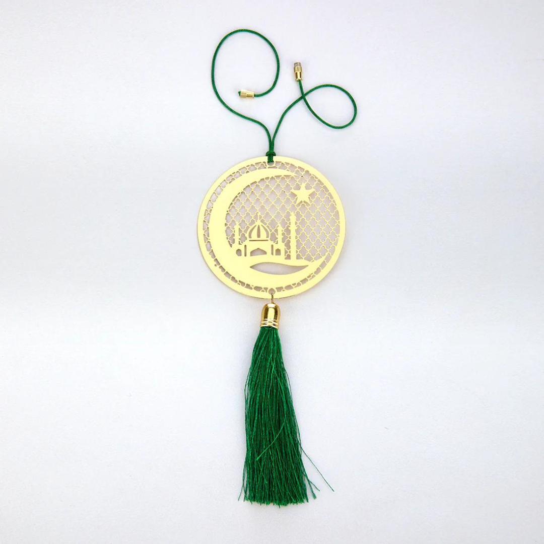 ADORAA's Islamic Muslim Crescent Hanging Accessories for Car rear view mirror Decor in Brass with green tassel and dori. Handcrafted, by women artisans. Exclusive collection of Elegant design Automotive Rear View Mirror charm for your special car. Great decoration for car and perfect Gift for your friend, family and lover