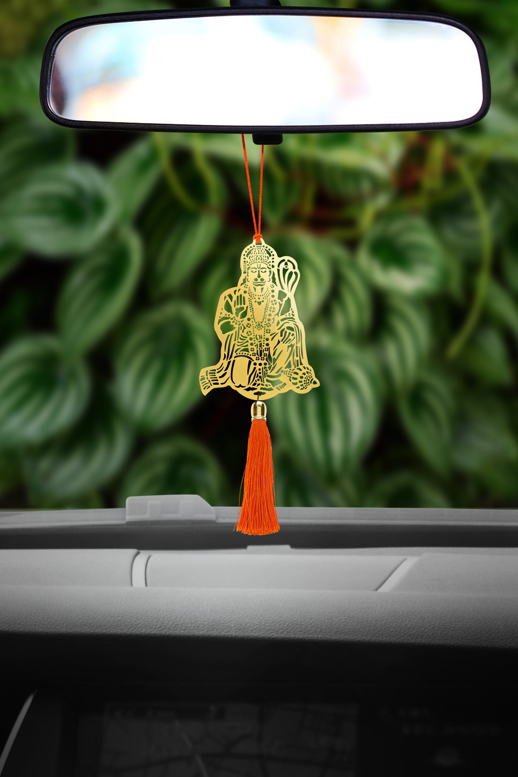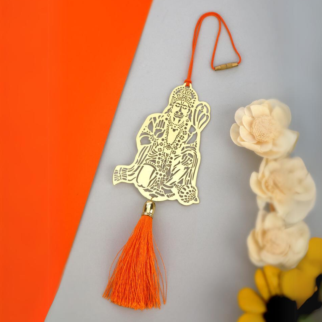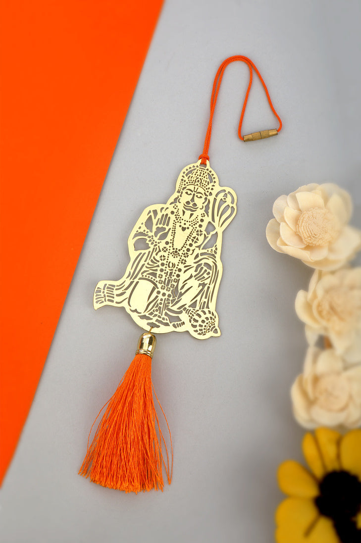 Jai Hanuman Bajrang Bali Hanging Accessories for Car rear view mirror Décor in Brass with Red Dori & Tassel. You can choose from your favorite divine form, bestowing blessings, comfort, and protection on all your life journeys. The exclusive collection features an elegant design Automotive Rear View Mirror charm, suitable for any car.