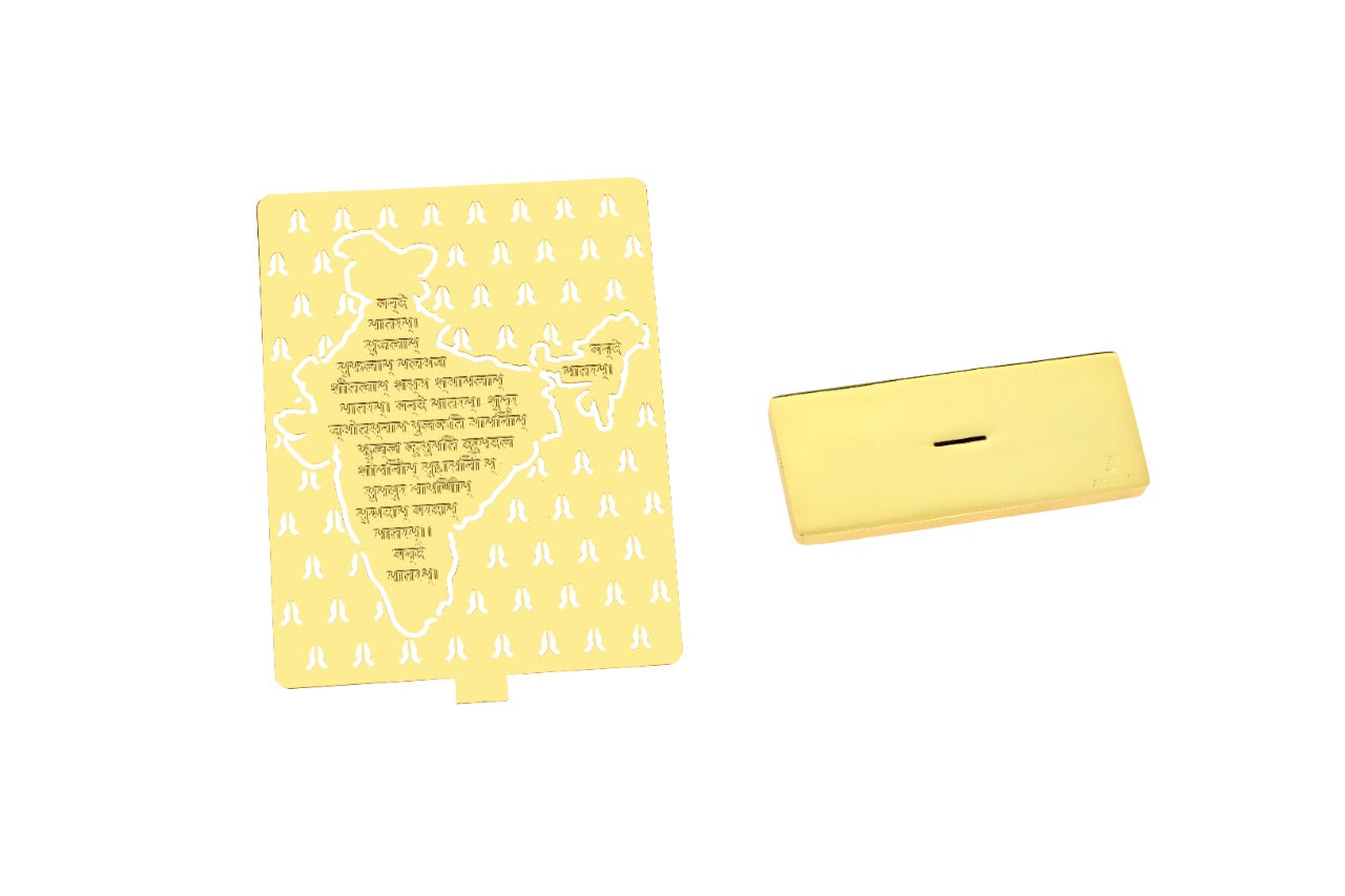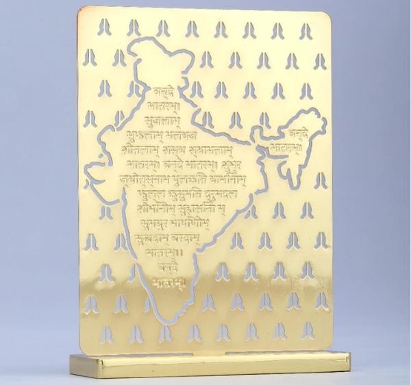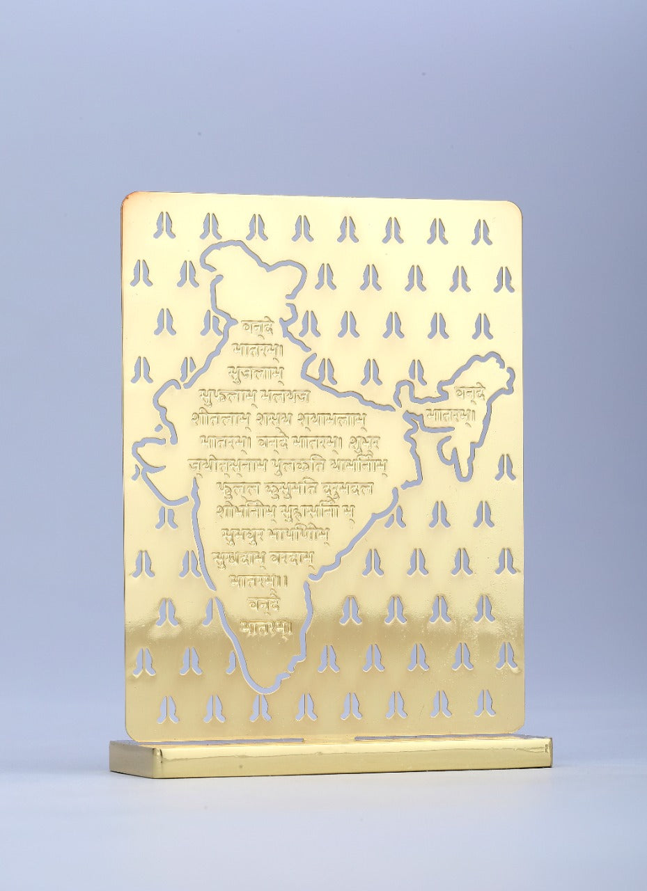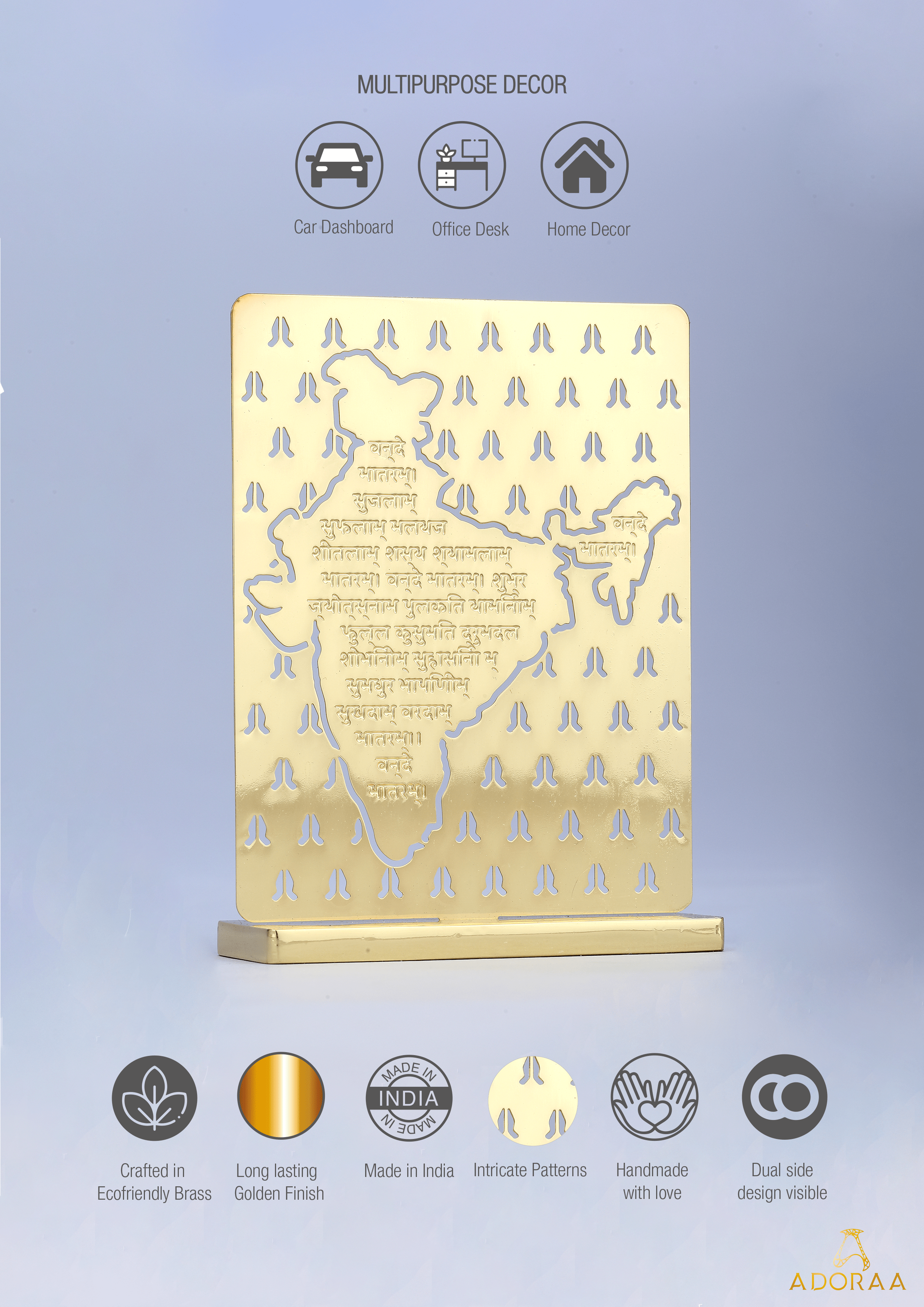 ADORAA's India Vande Matram Desk/Car Dashboard/Temple Décor crafted in brass with golden finish. Intracrately crafted design, multiutility décor for car dashboard, office desk, home side tables/study tables. Unique gift for your loved ones