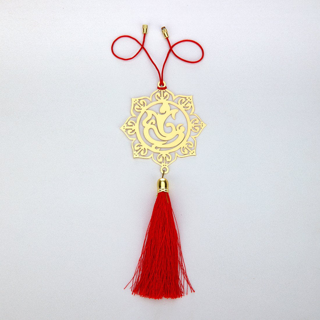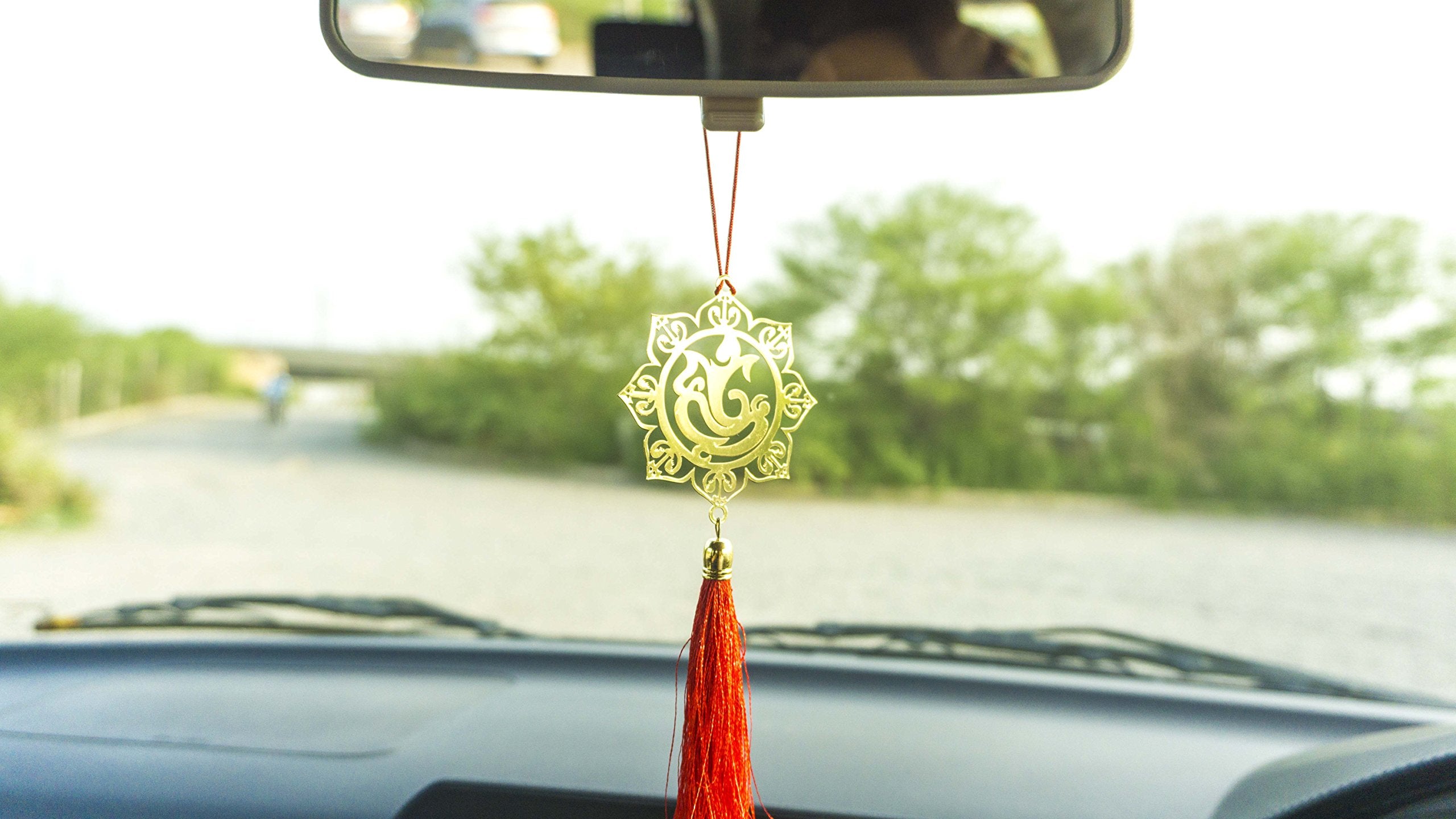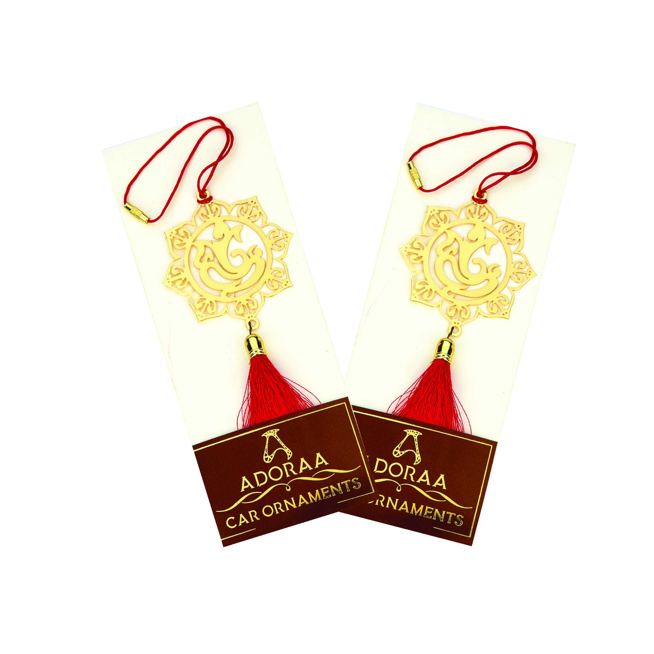 Lord Ganesha, is one of the most popular deities in Hindu Mythology and is also known as the Lord of beginnings, success and wisdom and the remover of obstacles. He is known by many names i.e Ganapati, Vinayaka, Pillaiyar and Binayak, Vignesha, Bappa and is one of the best-known and most worshipped deities across India. Ganesha is worshipped on many religious and secular occasions, especially at the beginning of ventures such as buying a vehicle, house, property or starting a business. There can hardly be a Hindu home in India which does not house an idol of Ganapati. Ganapati, being the most popular deity in India, is worshipped by almost all castes and in all parts of the country. Devotees believe that if Ganesha is worshipped, he grants success, prosperity and protection against adversity. Adoraa’s Ganesha Car Hanging decor is beautifully crafted in 100% eco-friendly Brass metal with a long lasting golden finish. The design takes inspiration from the modern Ganesha forms which is beautifully captured in a circular pattern with petals surrounding the boundary. It is accompanied by a bright red dori for hanging it in your car and a matching bright red tassel to adorn beautifully your car’s rear-view mirror. We have used a bright red accessory as red color is synonymous with celebrations, Hindu deities and festivals. This Ganesha rear view mirror car hanging decor is a perfect accessory for all types of car as it has a universal fit. So whether you have a hatchback, sedan or you drive an SUV, this Ganesha Car Hanging decor perfectly adorns your rear view mirror and helps you complete the interior decoration for your car.