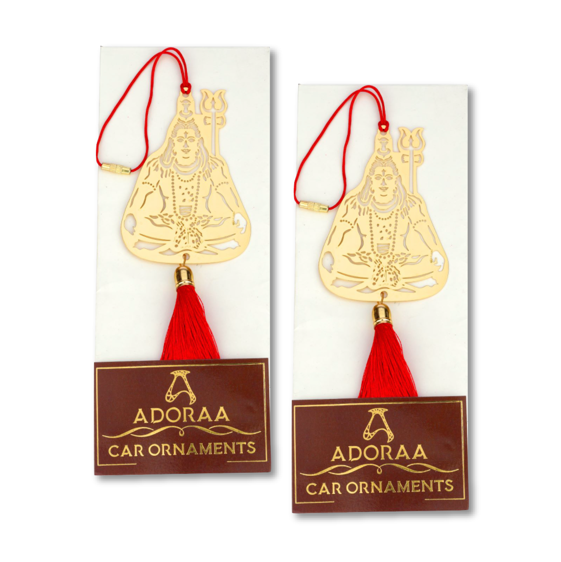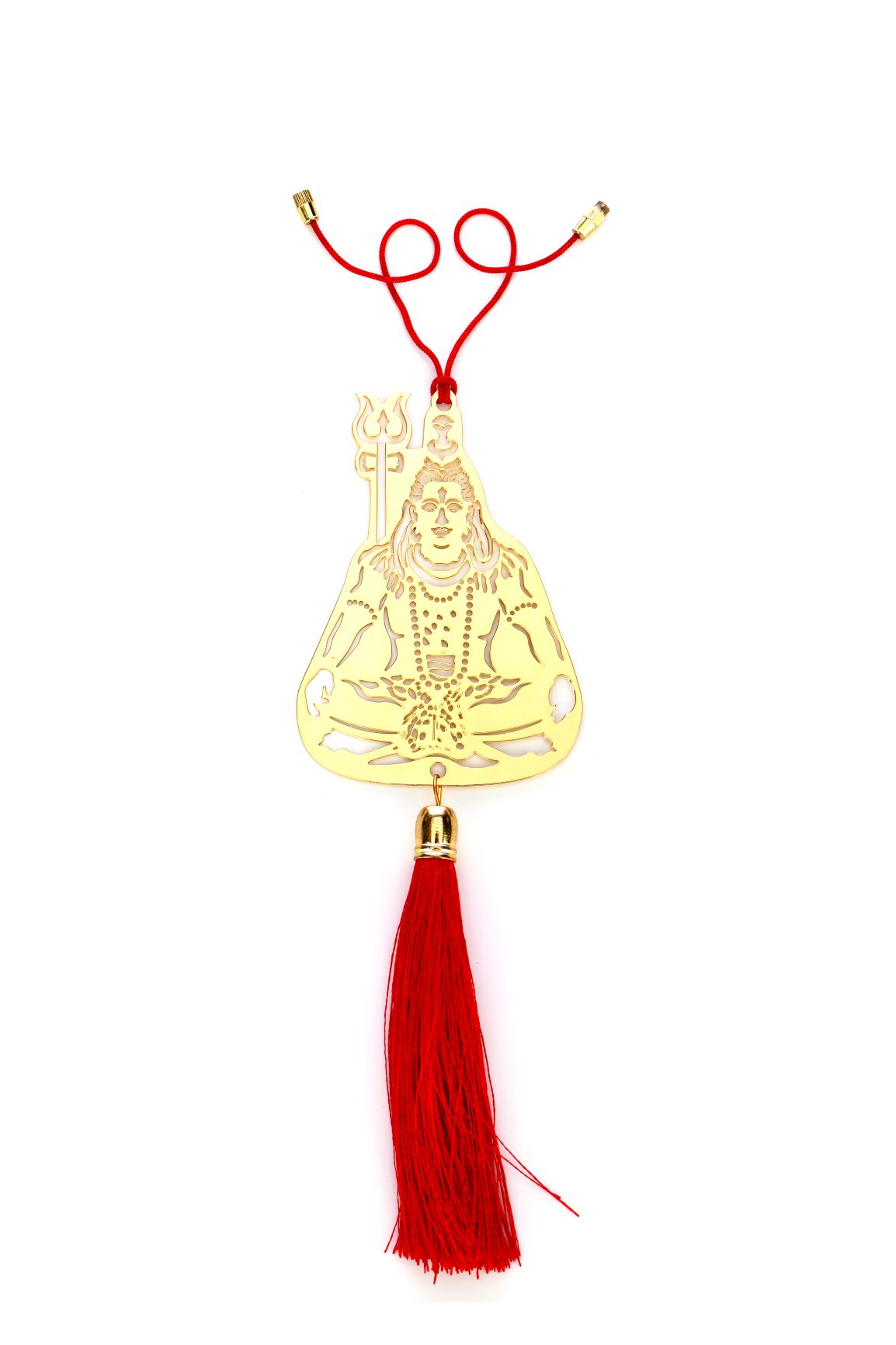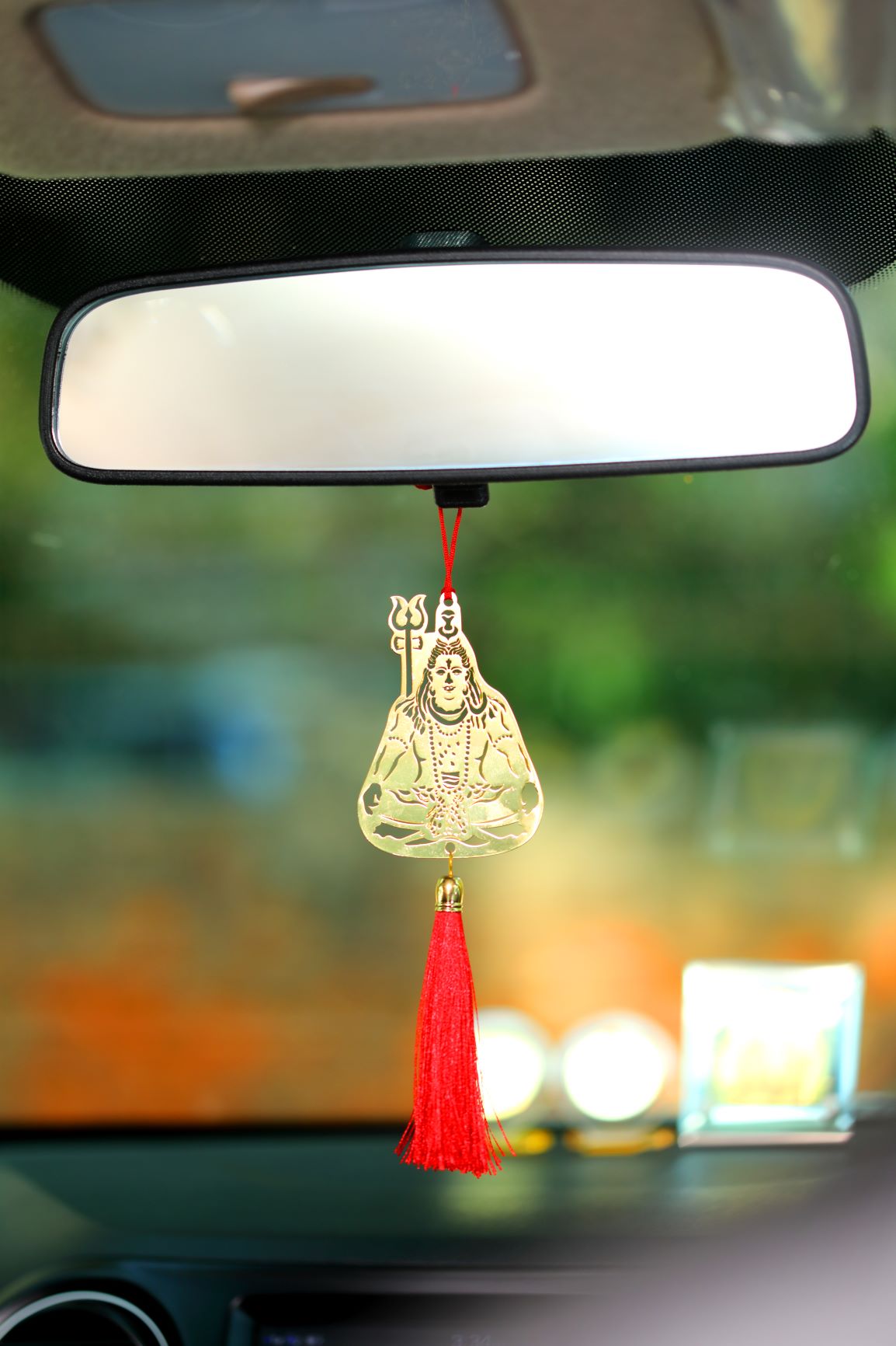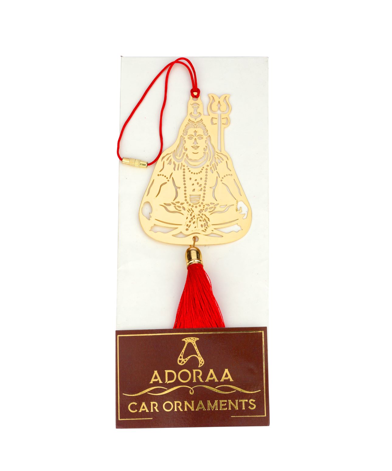 ADORAA's Hindu God Shiva/Mahadev/Shivji/Bholenath Hanging Accessories for Car rear view mirror Decor in Brass with red tassel and dori. Handcrafted, by women artisans. Exclusive collection of Elegant design Automotive Rear View Mirror charm for your special car. Great decoration for car and perfect Gift for your friend, family and lover.