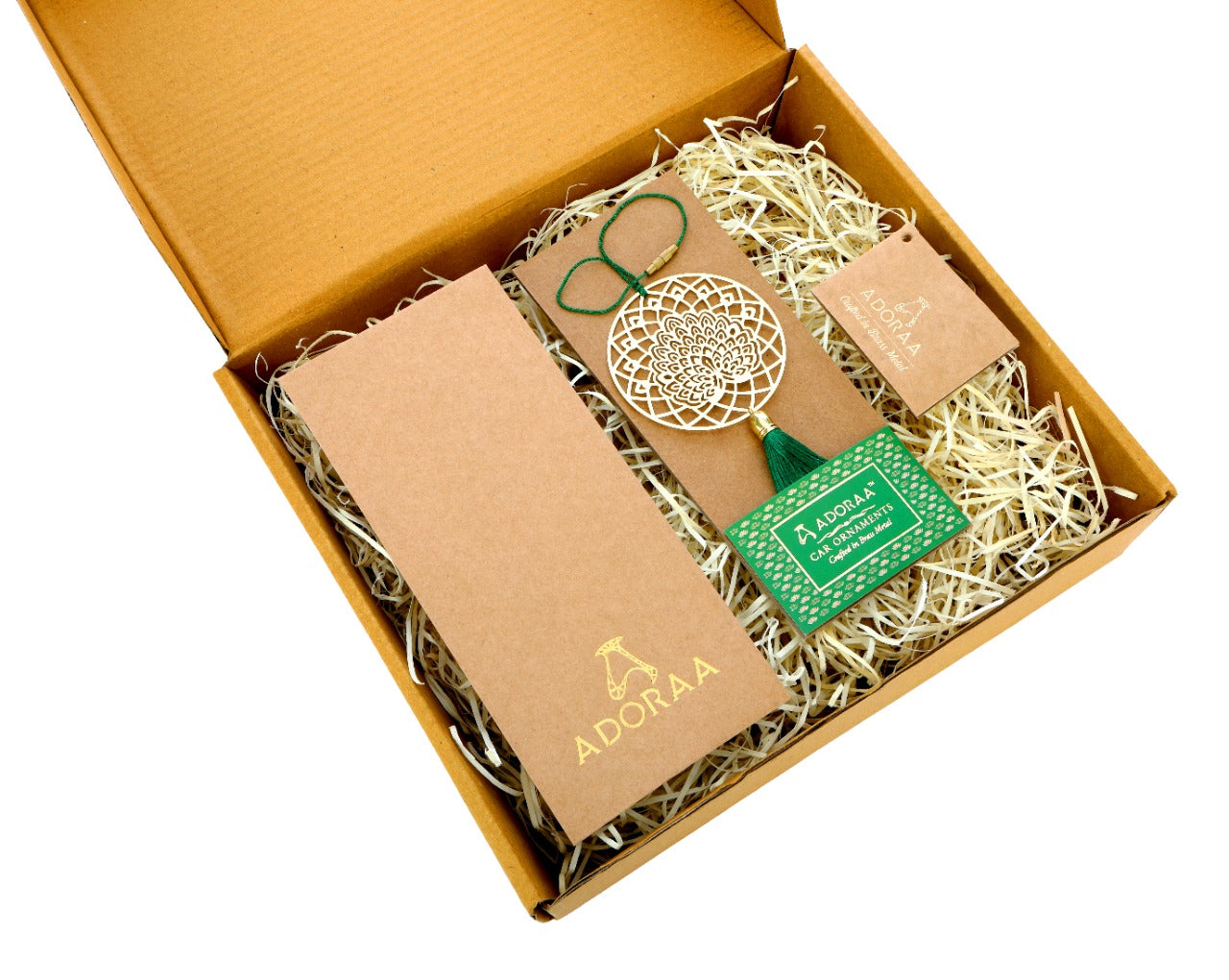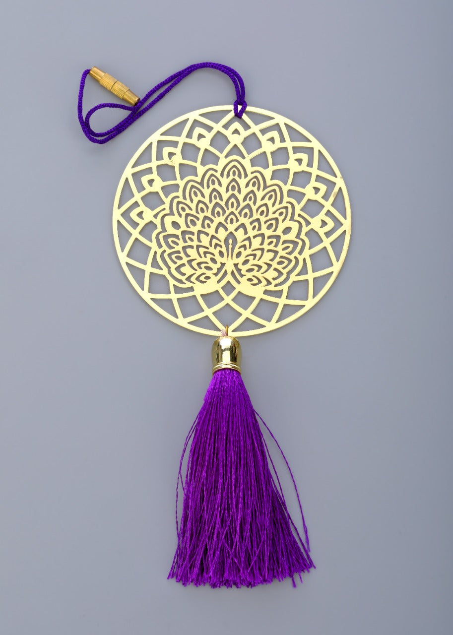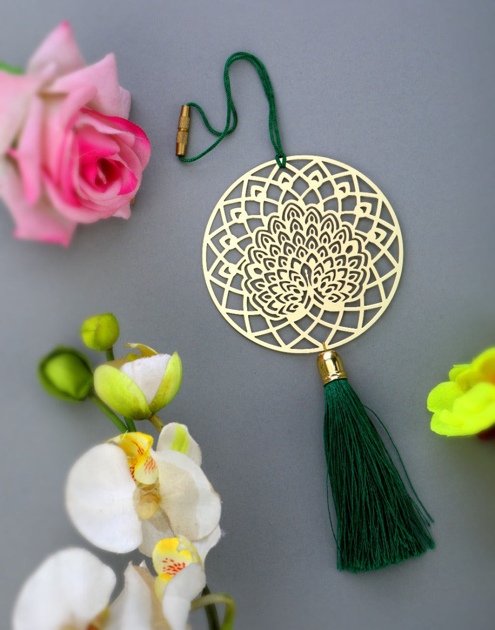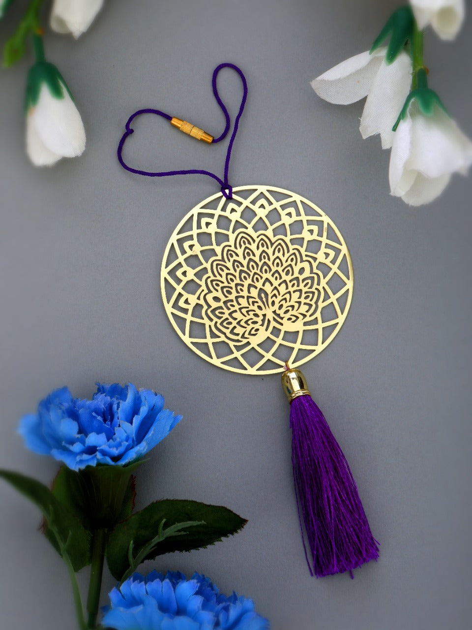 Adoraa's brass Metal Car Hanging rear view mirror Accessory/Décor in brass with satin dori & tassel . Handcrafted, by women artisans. Exclusive collection of Elegant design Automotive Rear View Mirror charm for your special car. Great decoration for car and perfect Gift for your friend, family and lover.
